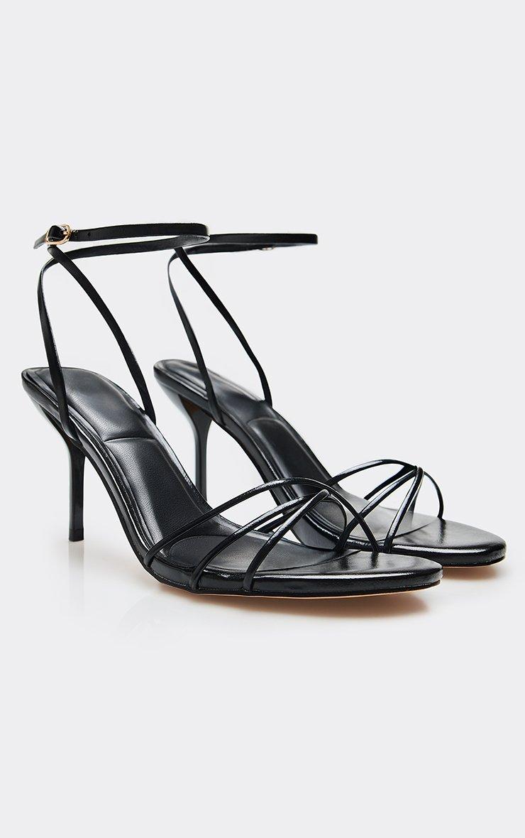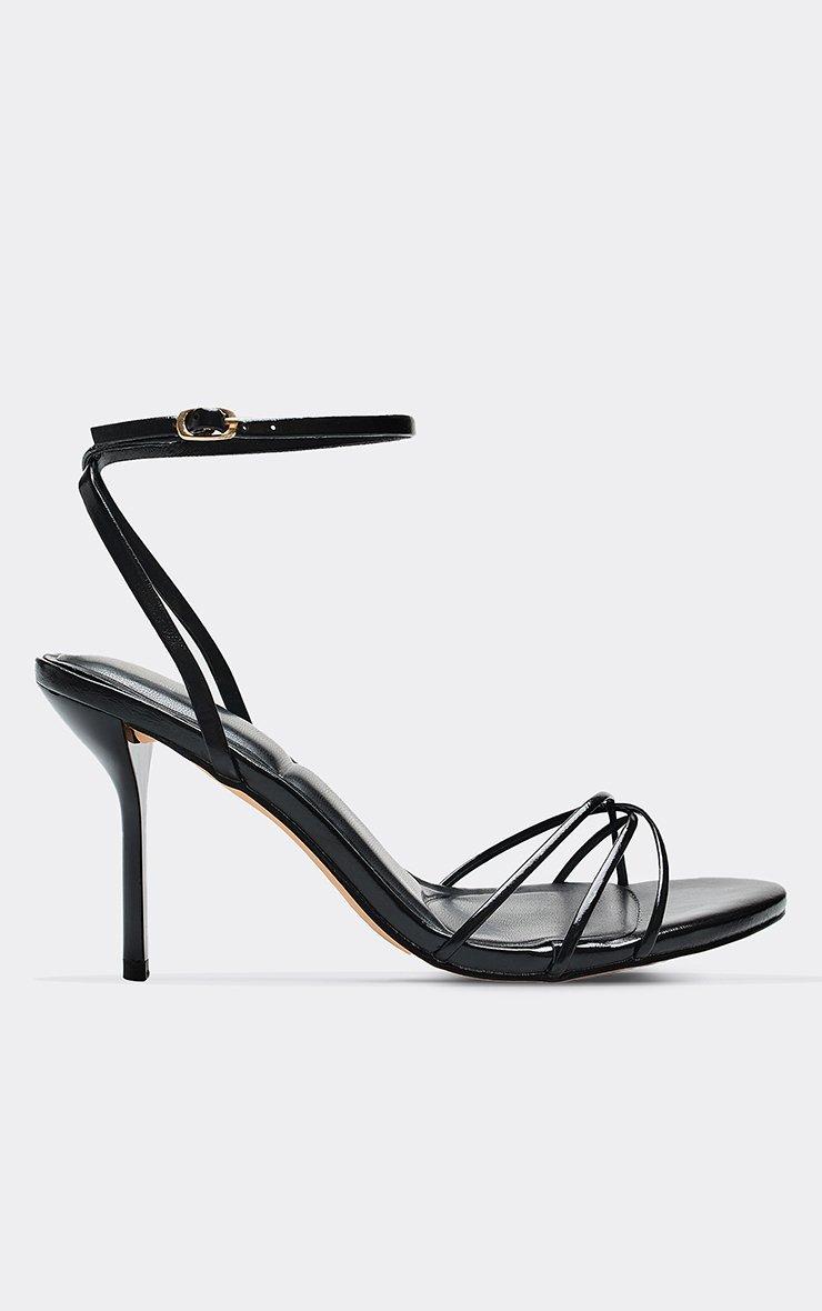 Fango Strappy Detail Stiletto Heel In Black Faux Leather