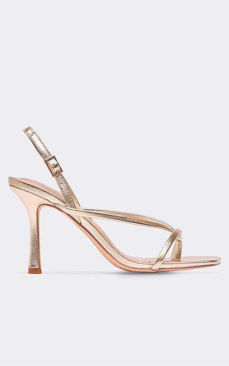 Zaynah Strappy Square Toe Slingback Heel In Gold Faux Leather