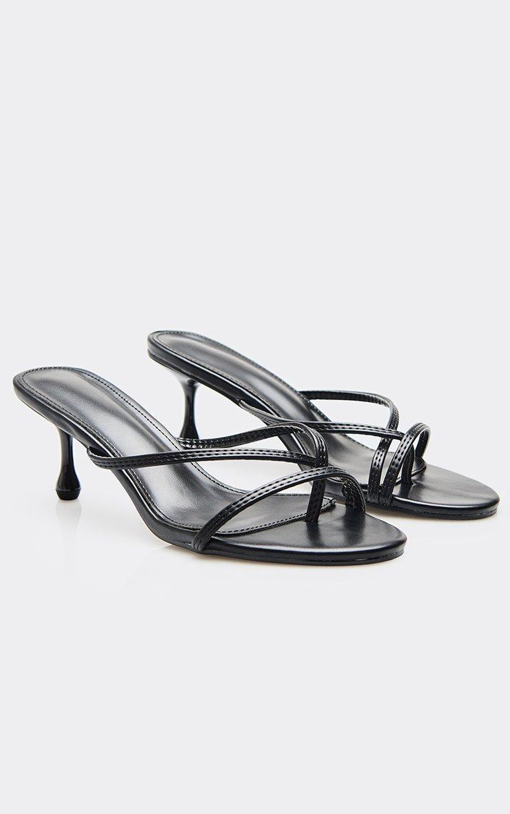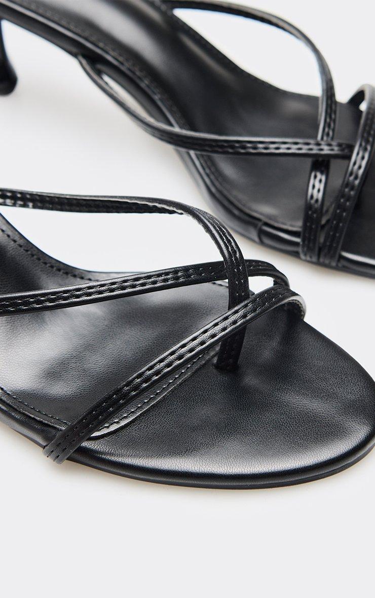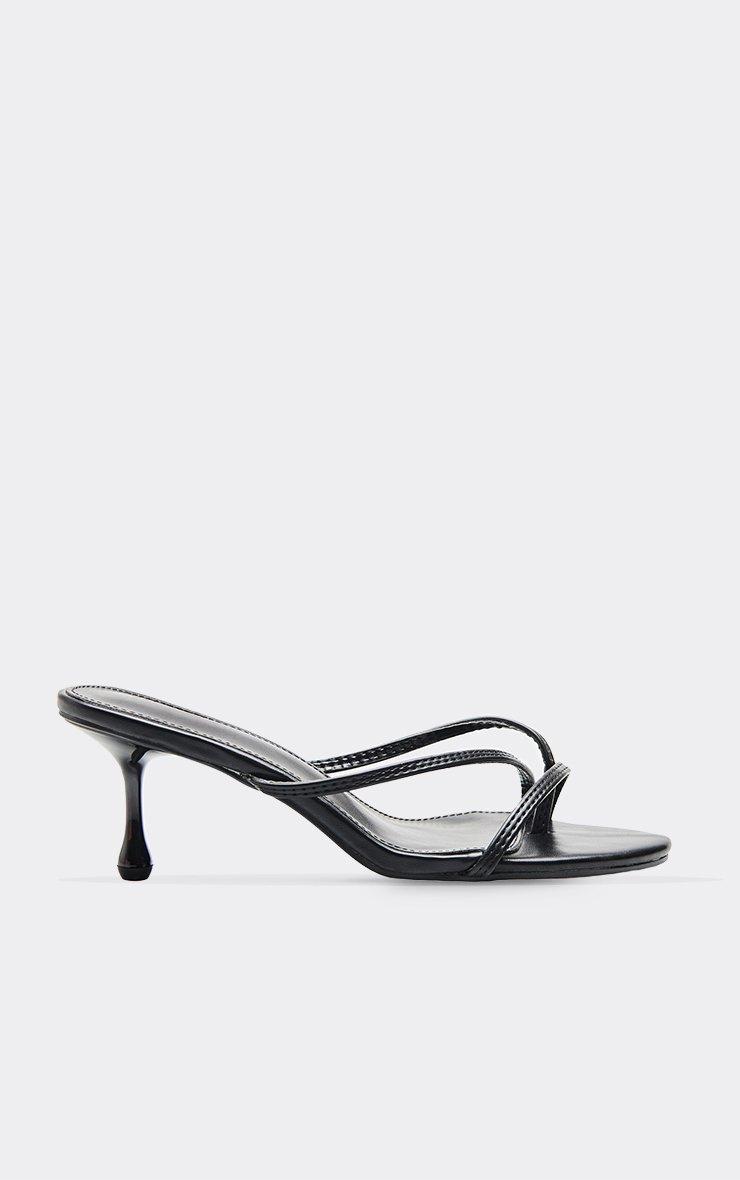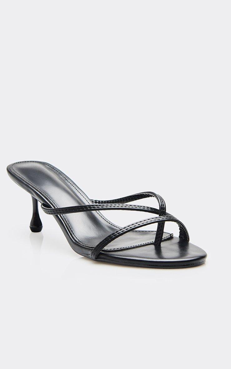 Jayda Strappy Thong Kitten Heel In Black Faux Leather