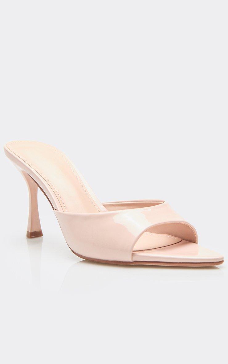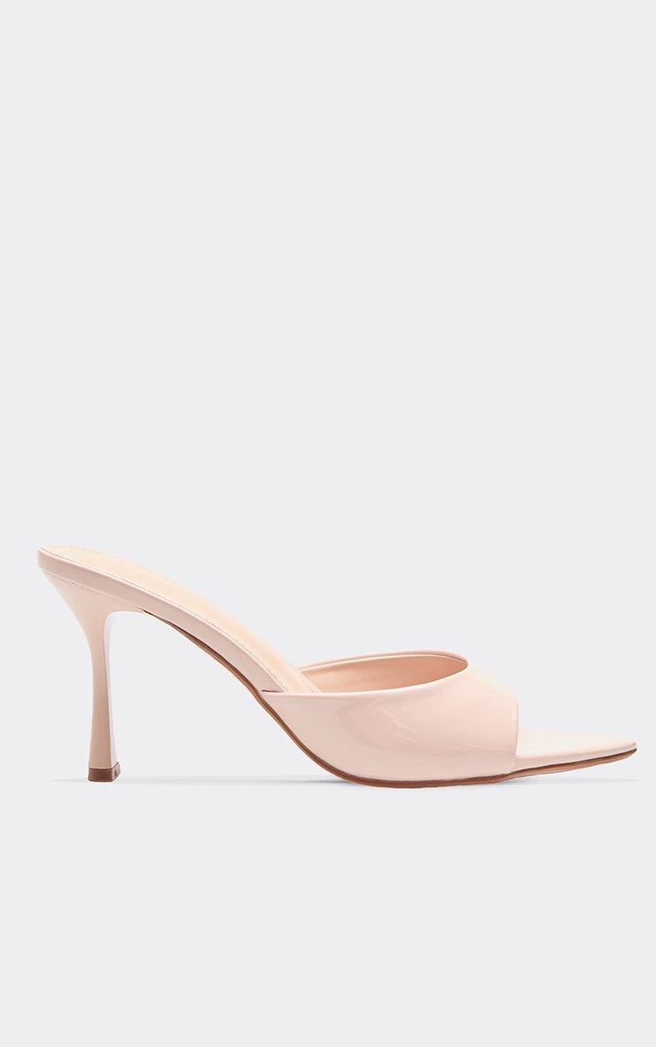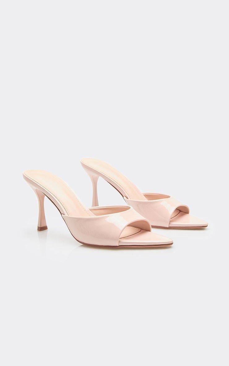 Estella Pointed Peep Toe Heel Mule In Nude Patent