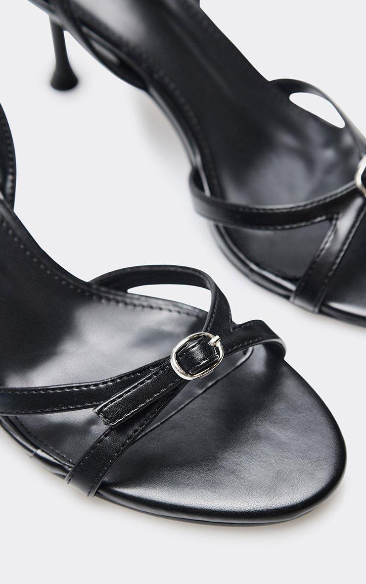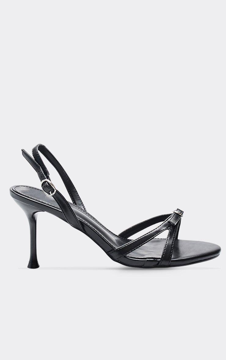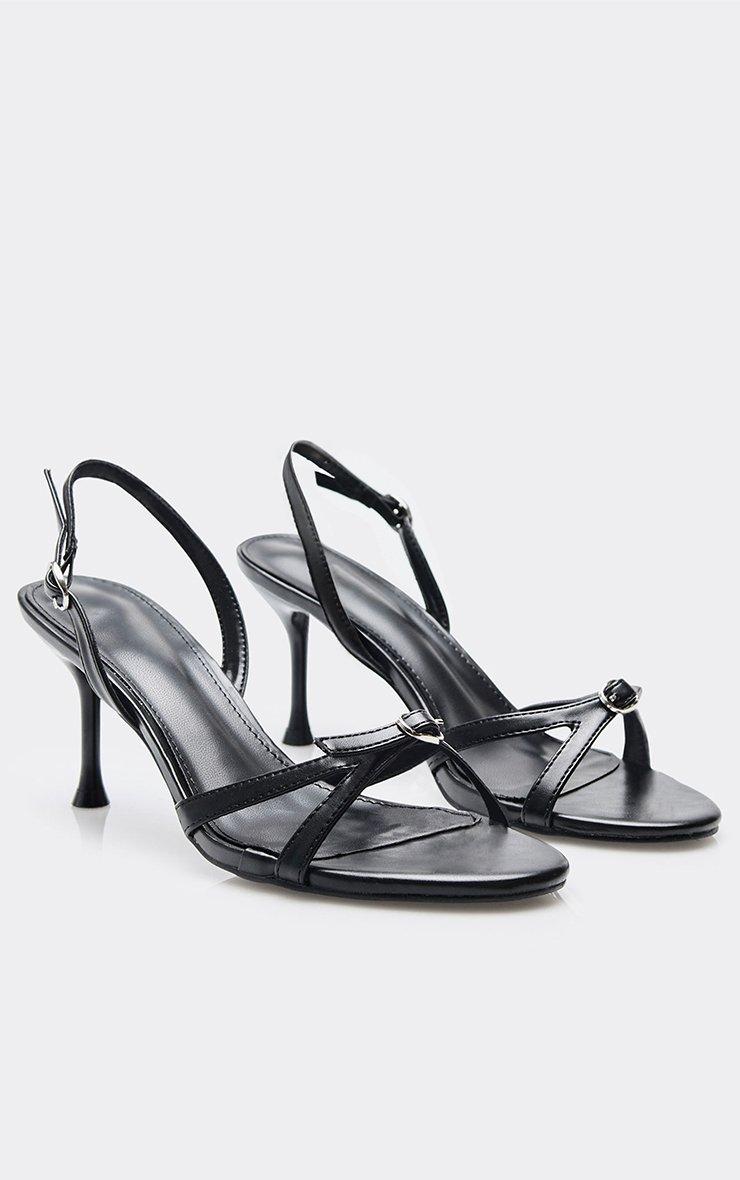Daffie Strappy Buckle Detail Heeled Mule In Black Faux Leather
