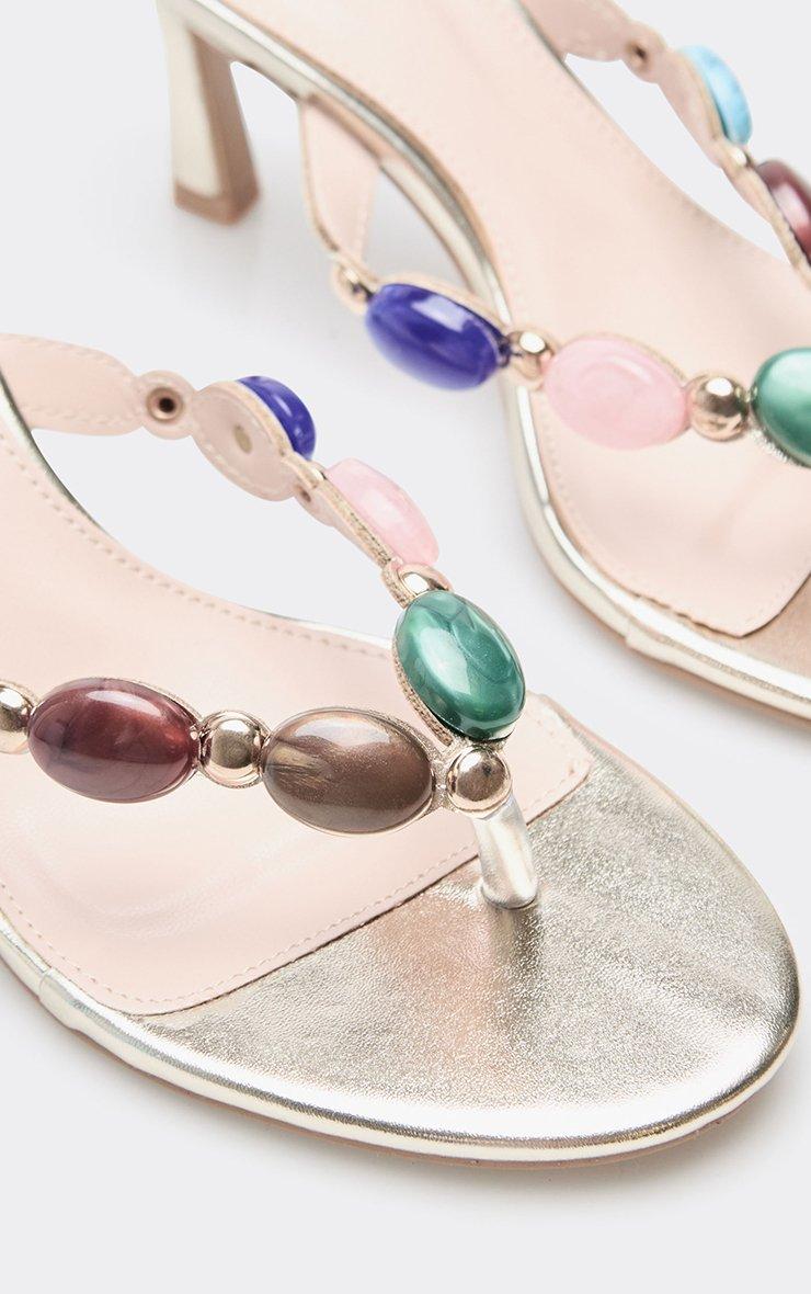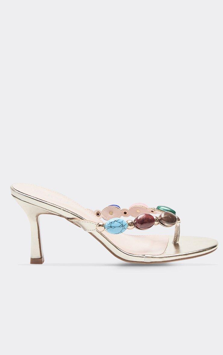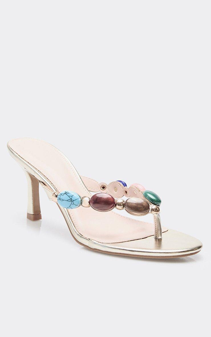 Aspen Gem Thong Strap Detail Heeled Mule In Gold Faux Leather