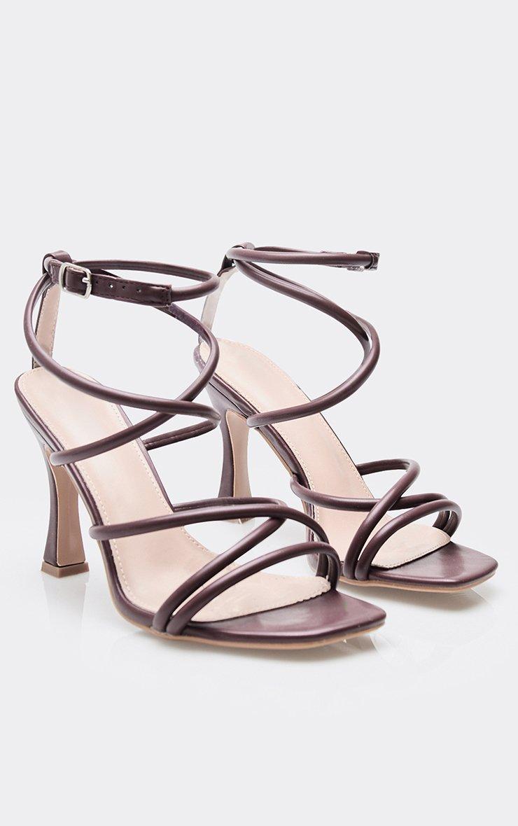 Clay Strappy Detail Structured Heel In Burgundy Faux Leather