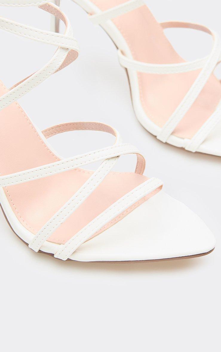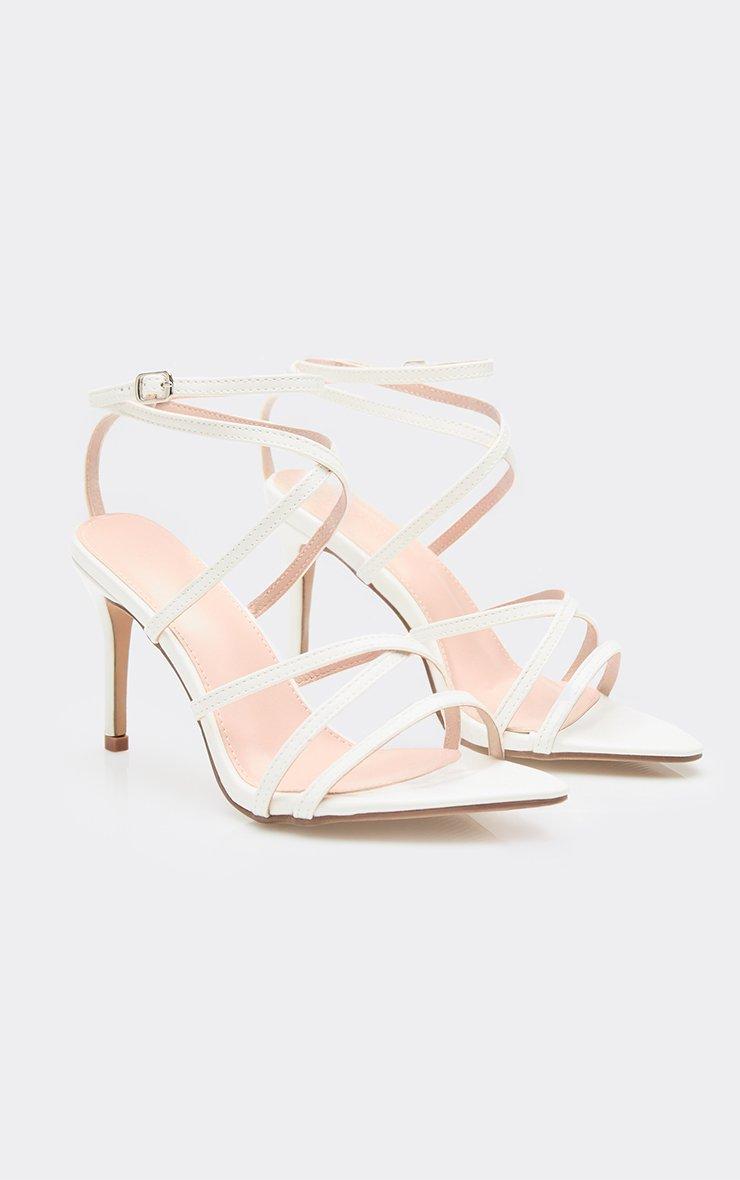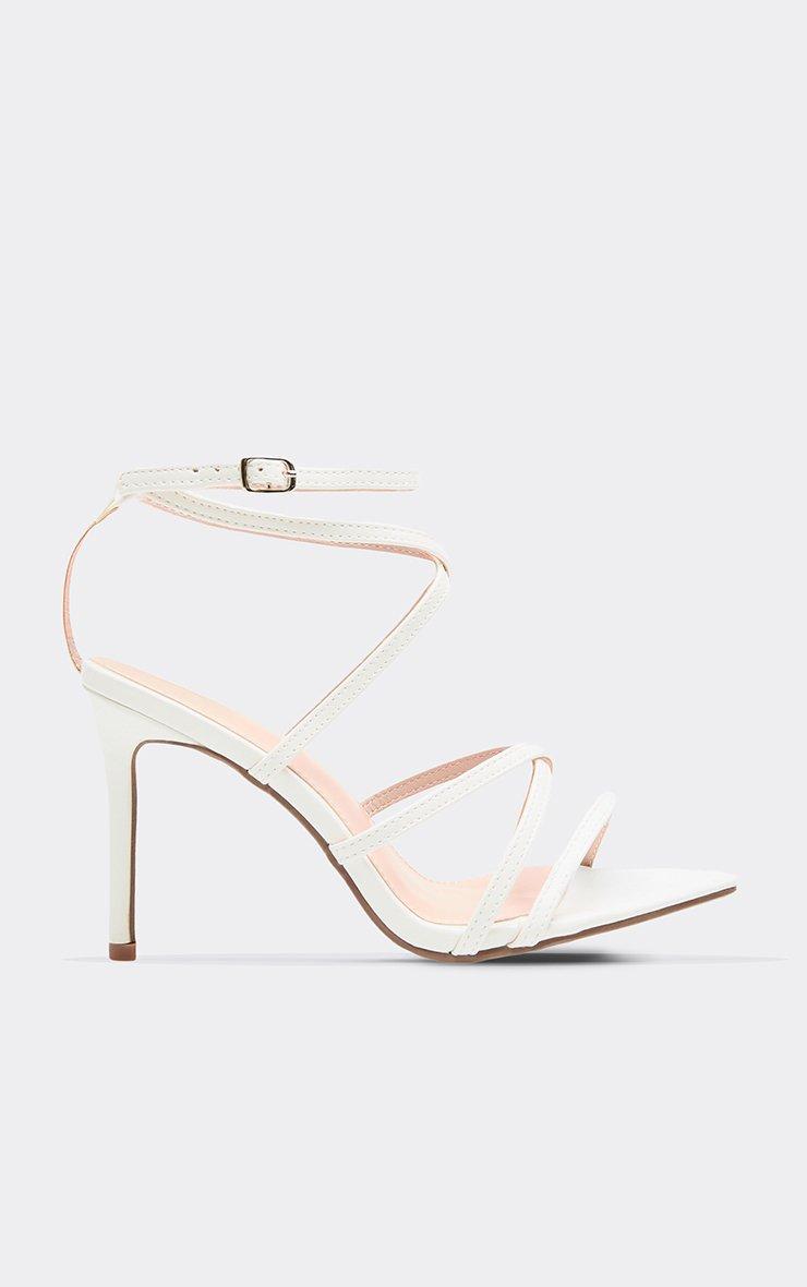 stone strappy detail pointed toe stiletto heel in white patent