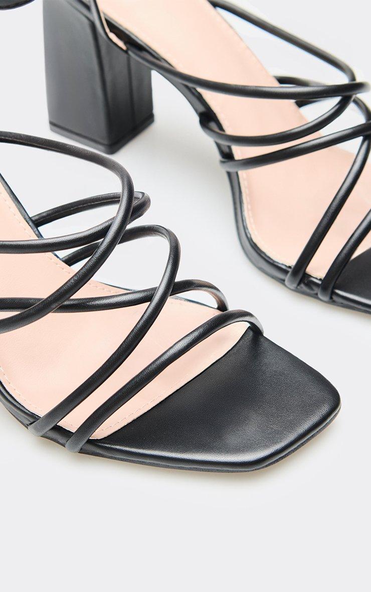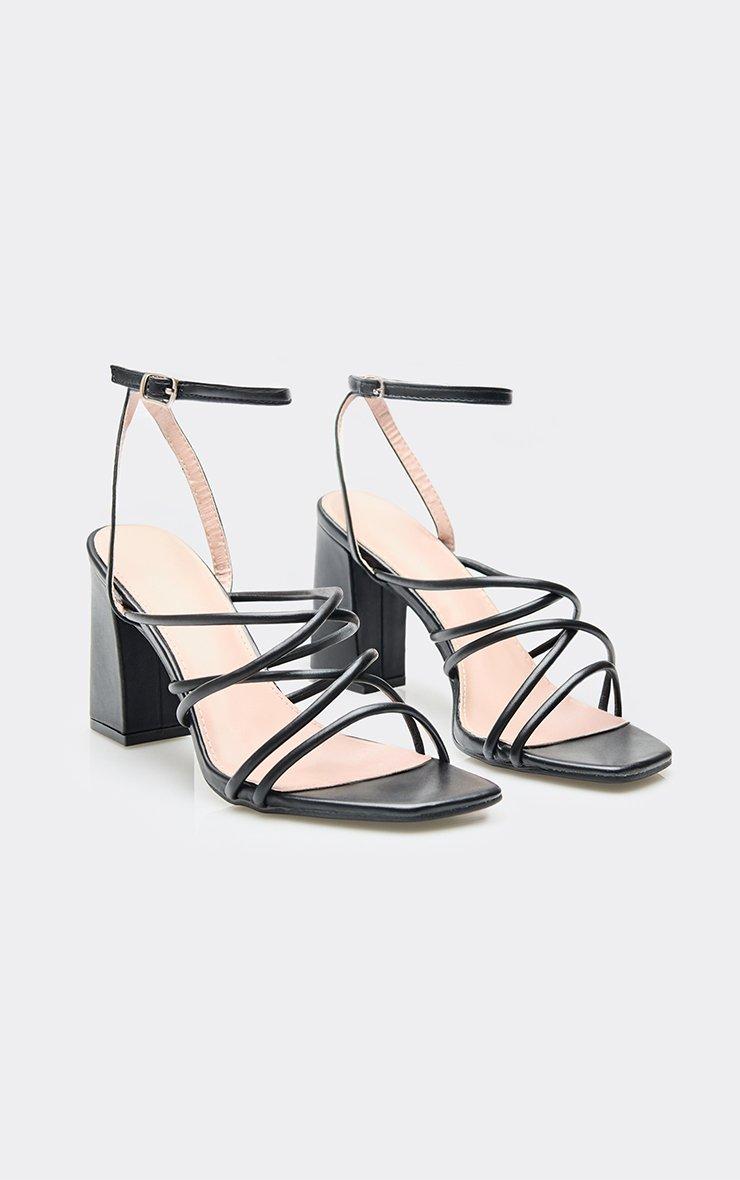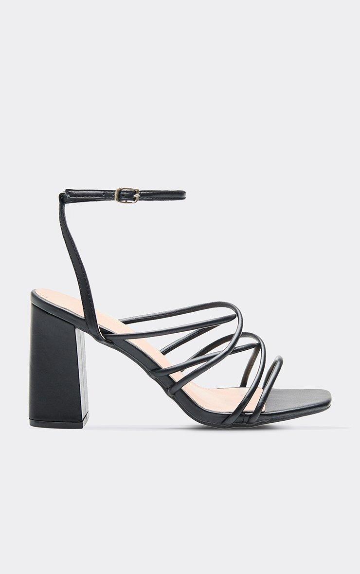 Ember Strappy Detail Block Heel In Black Faux Leather