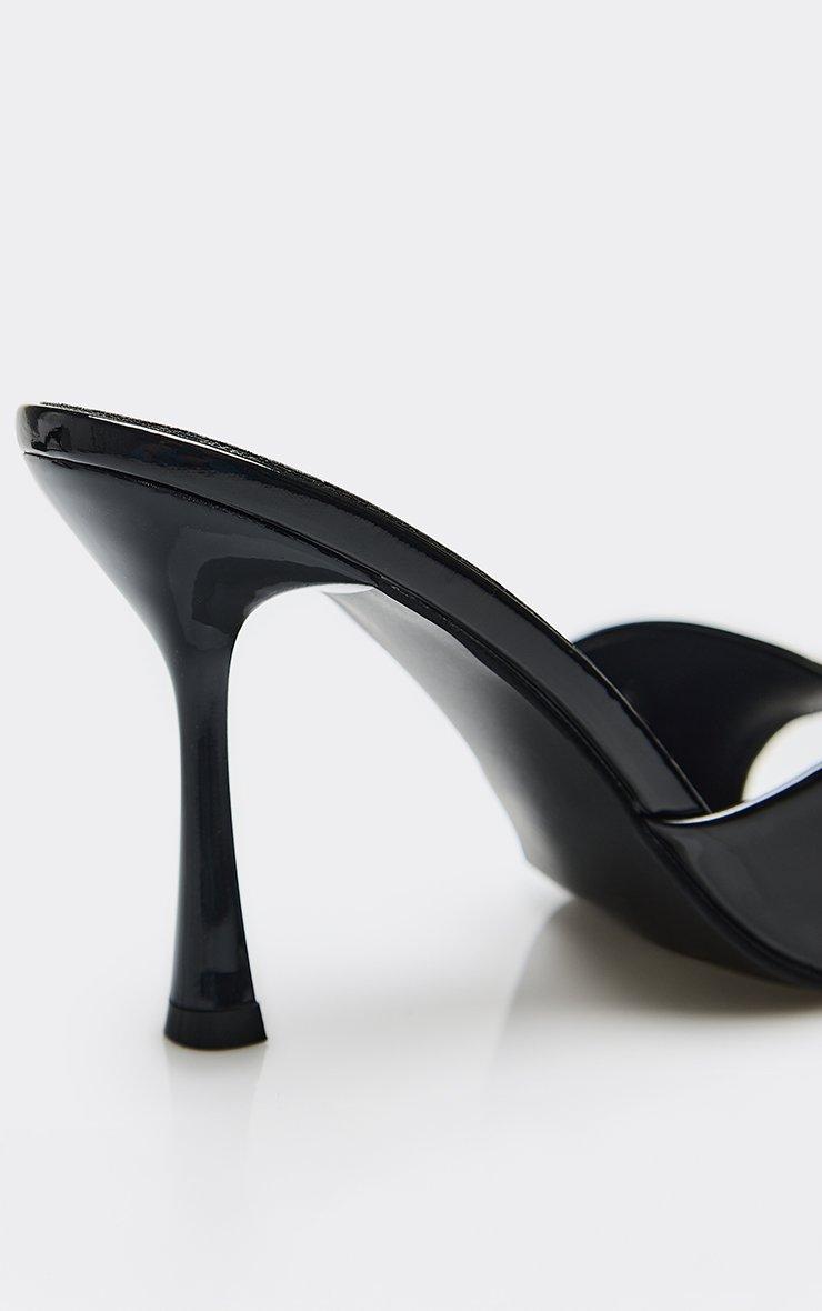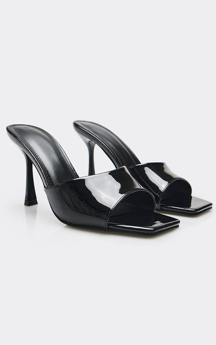 Gaia Square Peep Toe Stiletto Heeled Mule In Black Patent