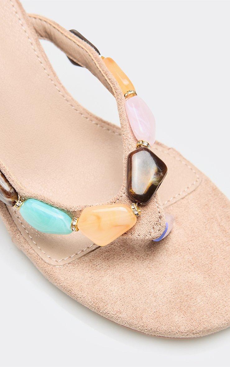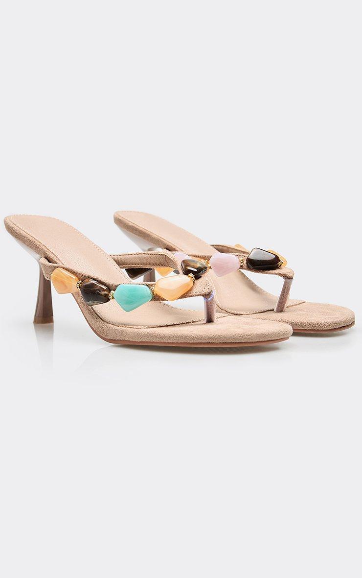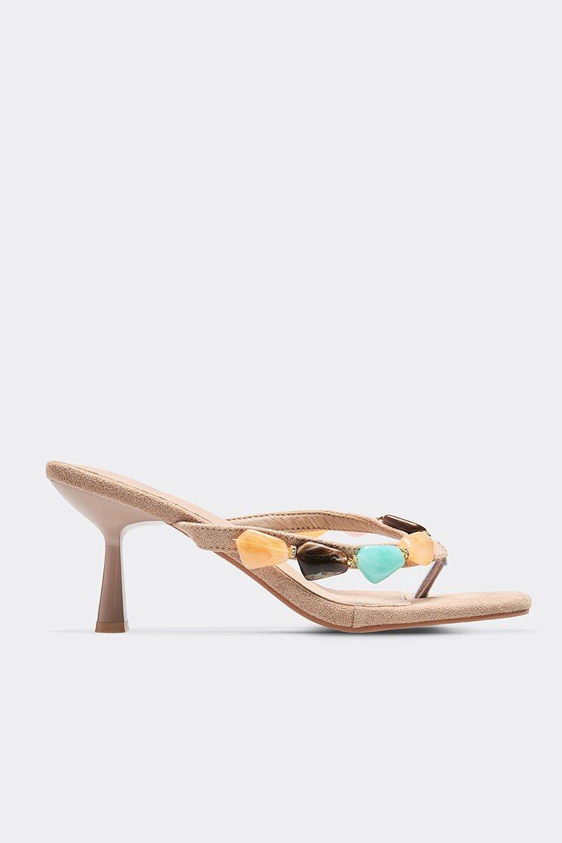 barrett gem thong strap heeled mule in nude faux suede