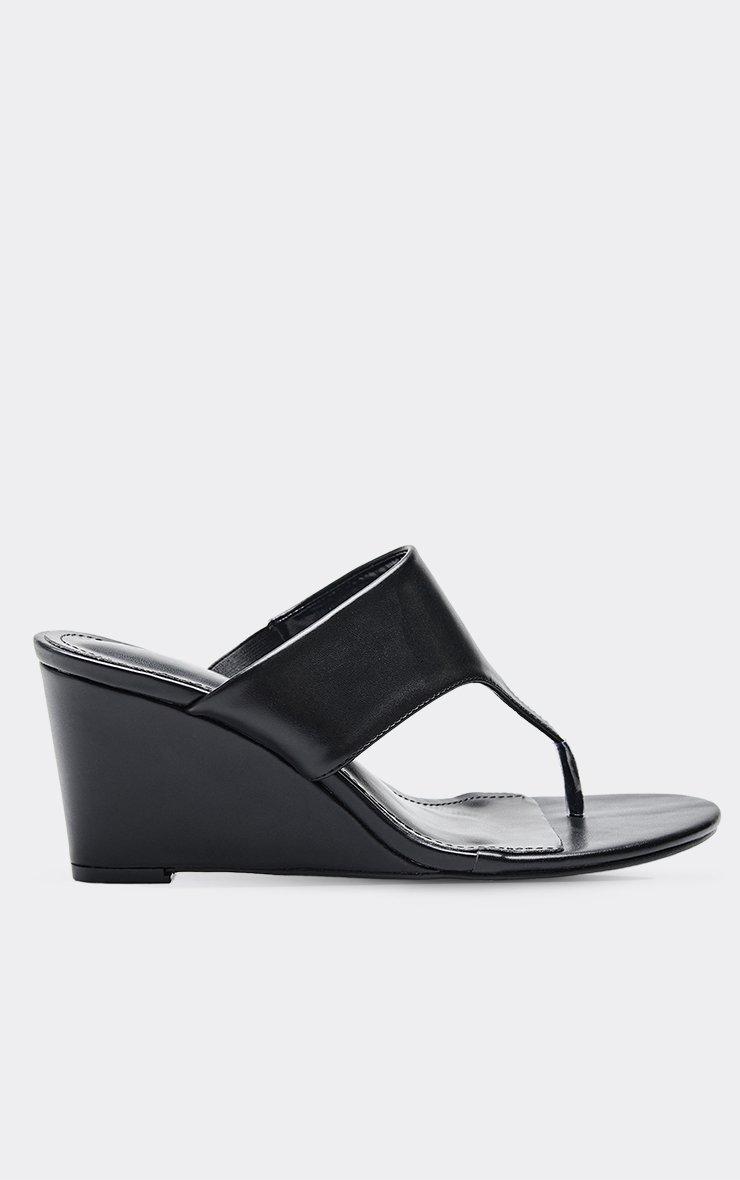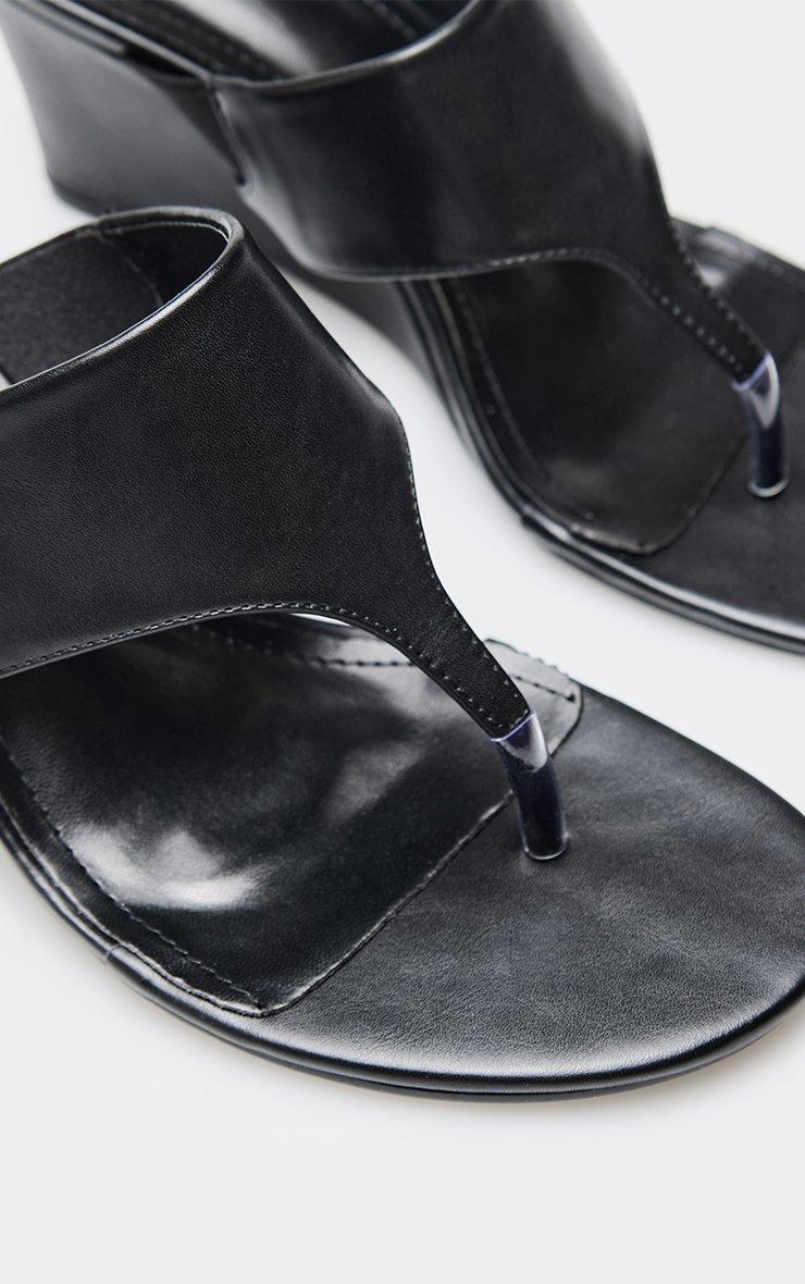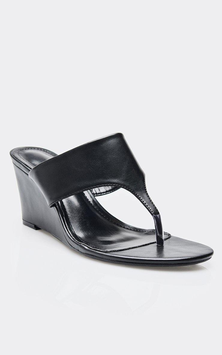 Bunni Thong Strap Detail Wedge Heel In Black Faux Leather