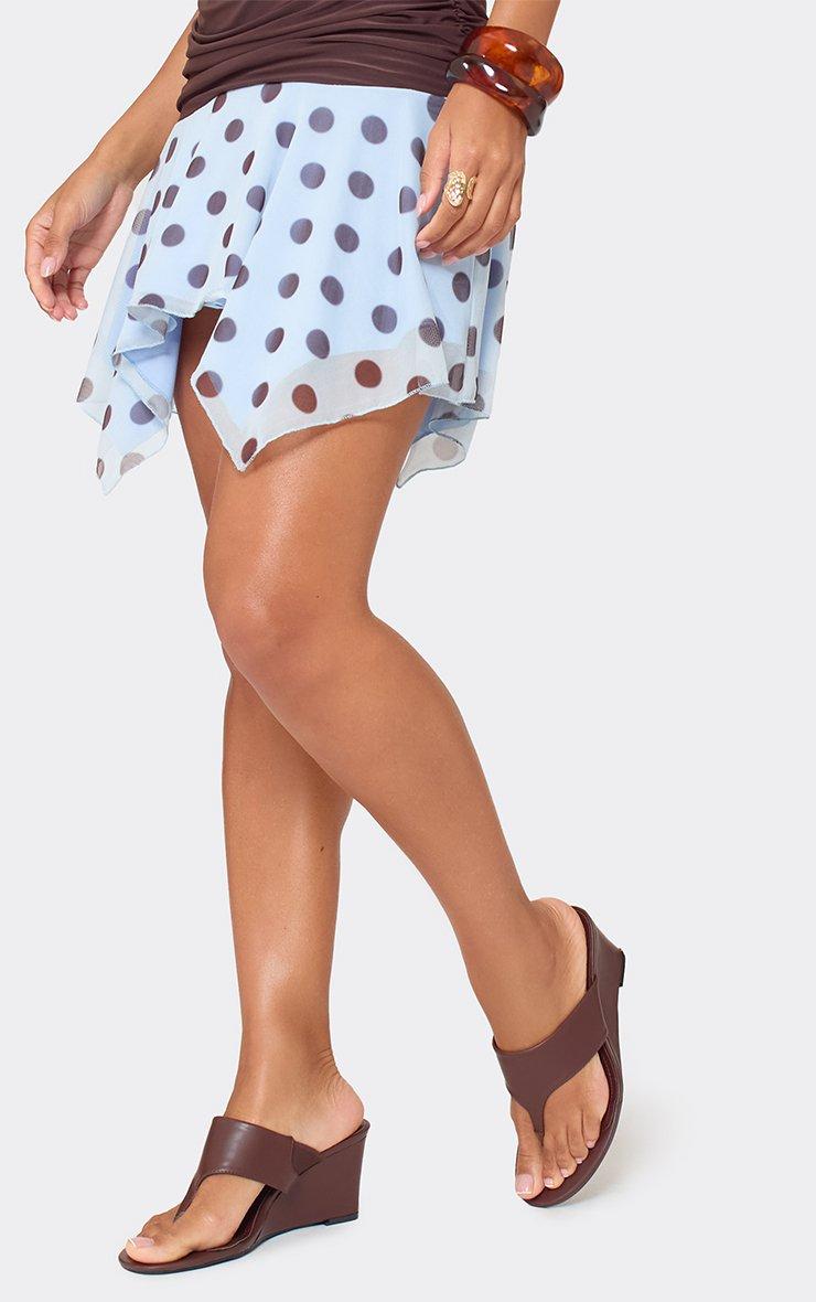 Bunni Thong Strap Detail Wedge Heel In Brown Faux Leather
