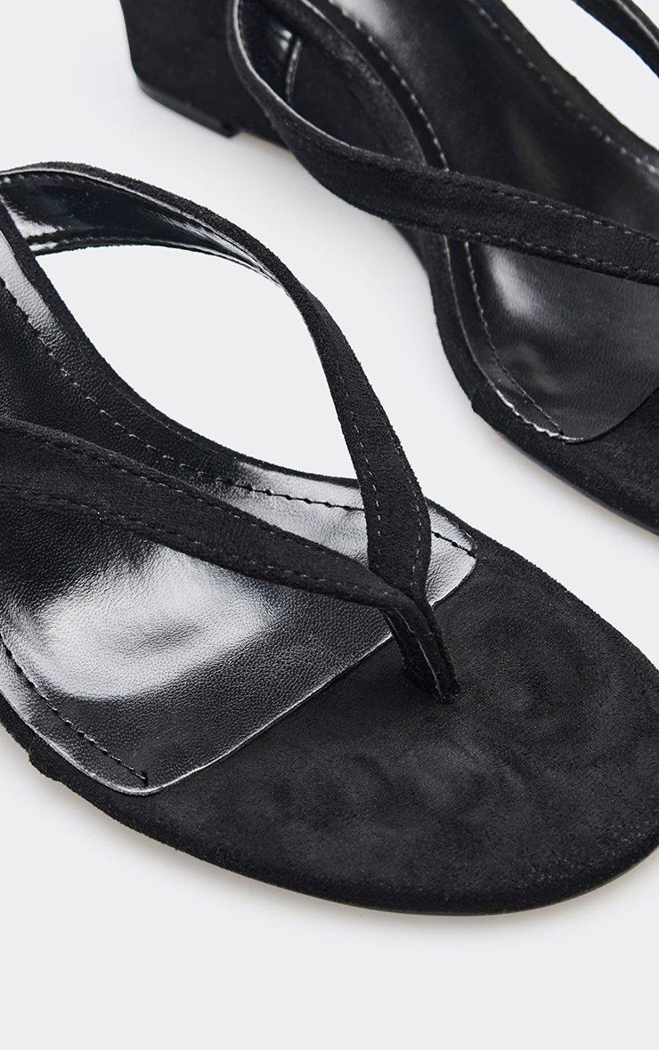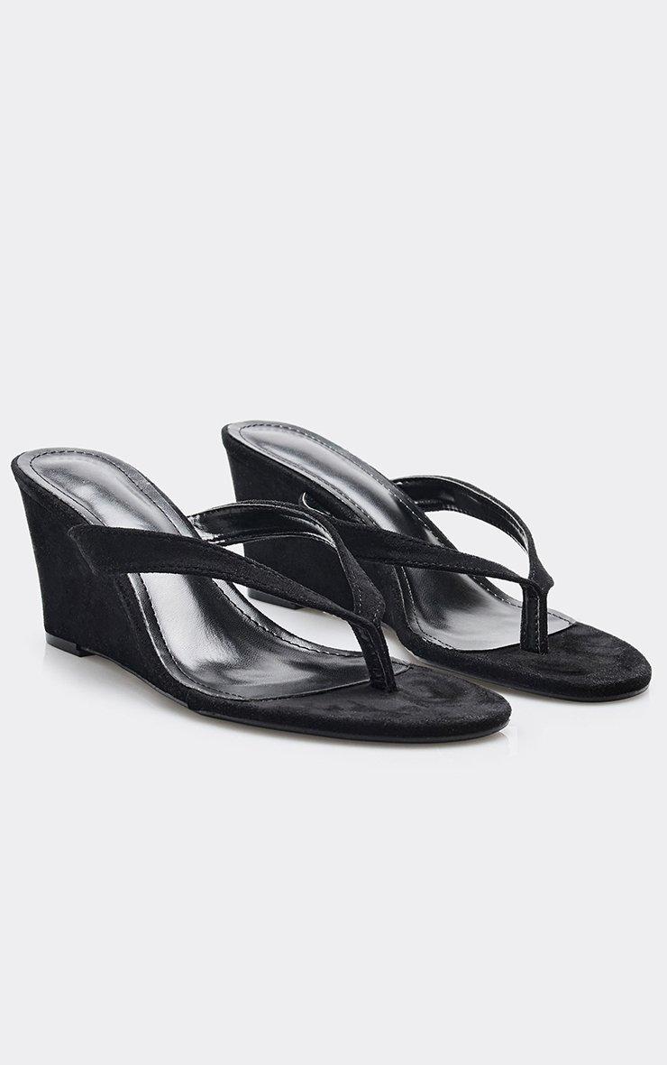 alba thong strap detail wedge heel in black faux suede