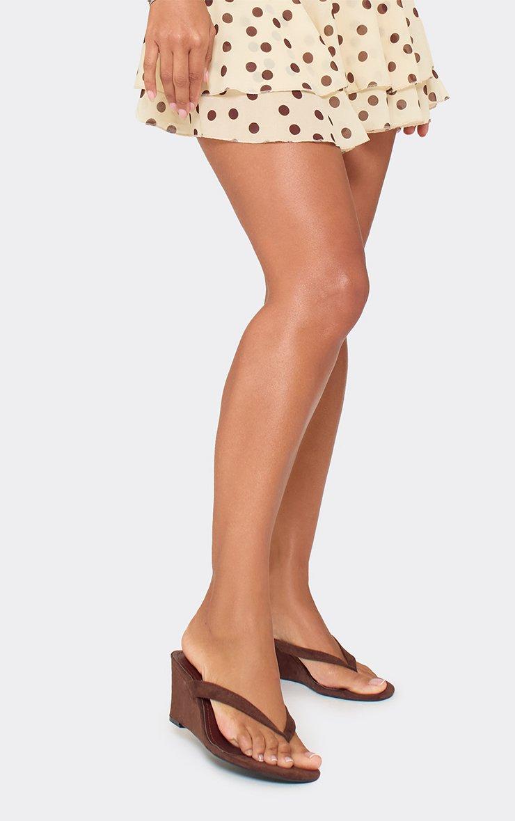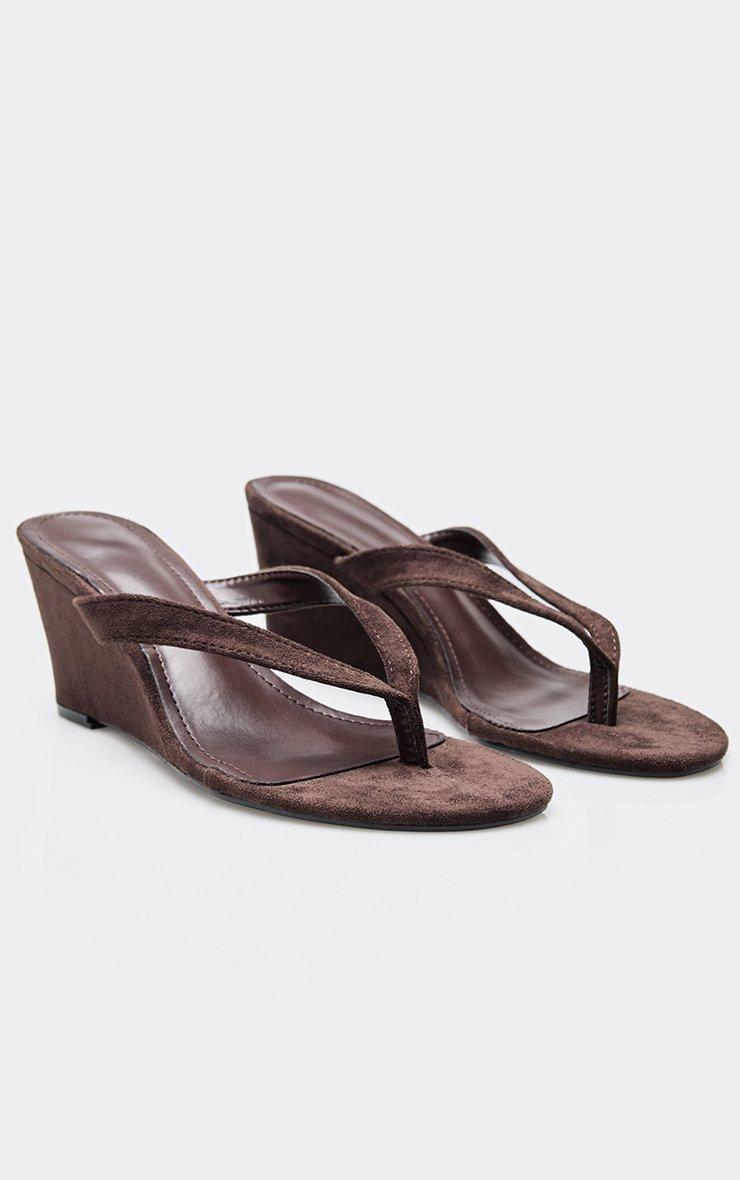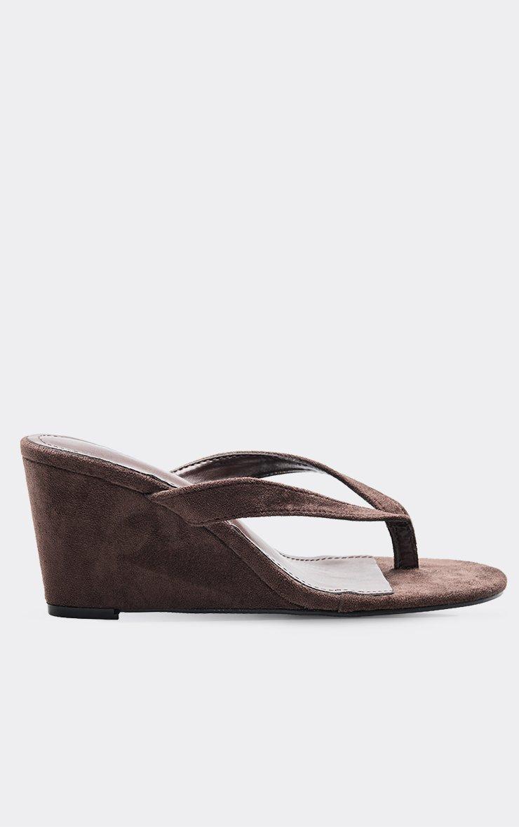 Alba Thong Strap Detail Wedge Heel In Brown Faux Suede