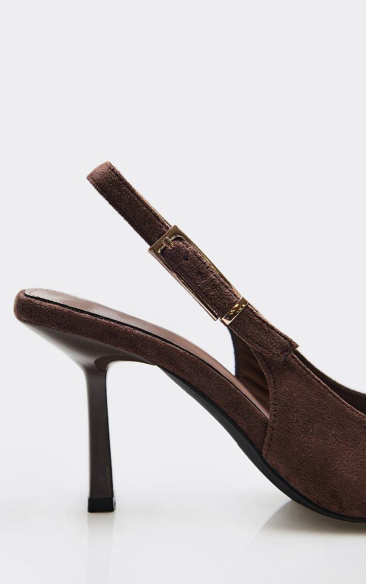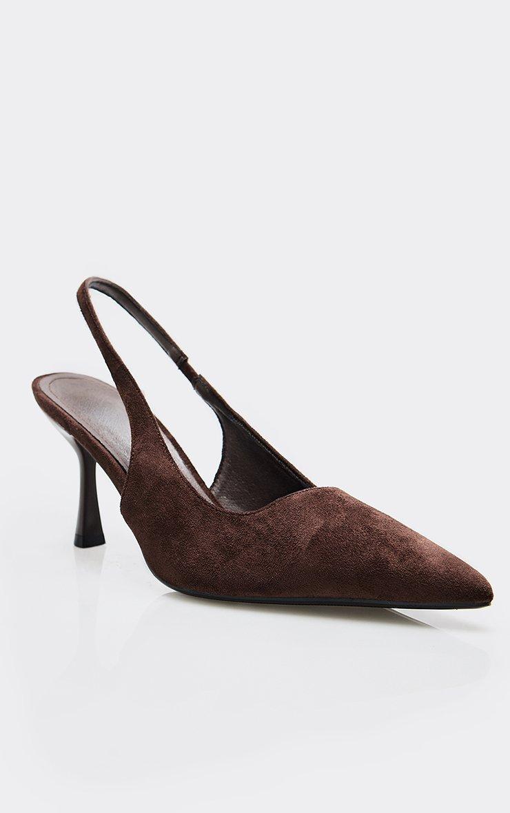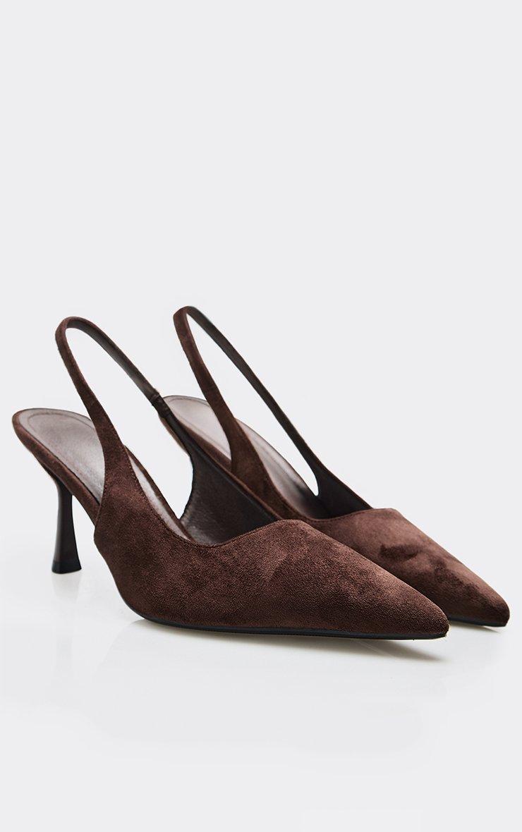 Mixed Pointed Toe Slingback Court Heel In Brown Faux Suede