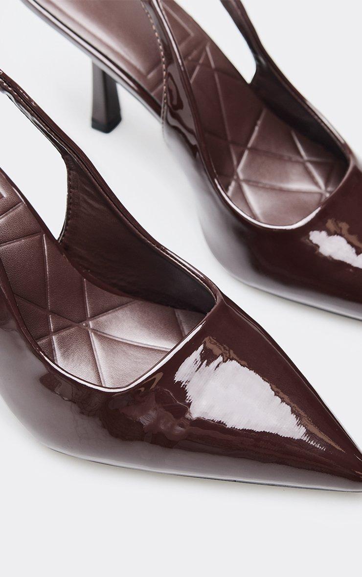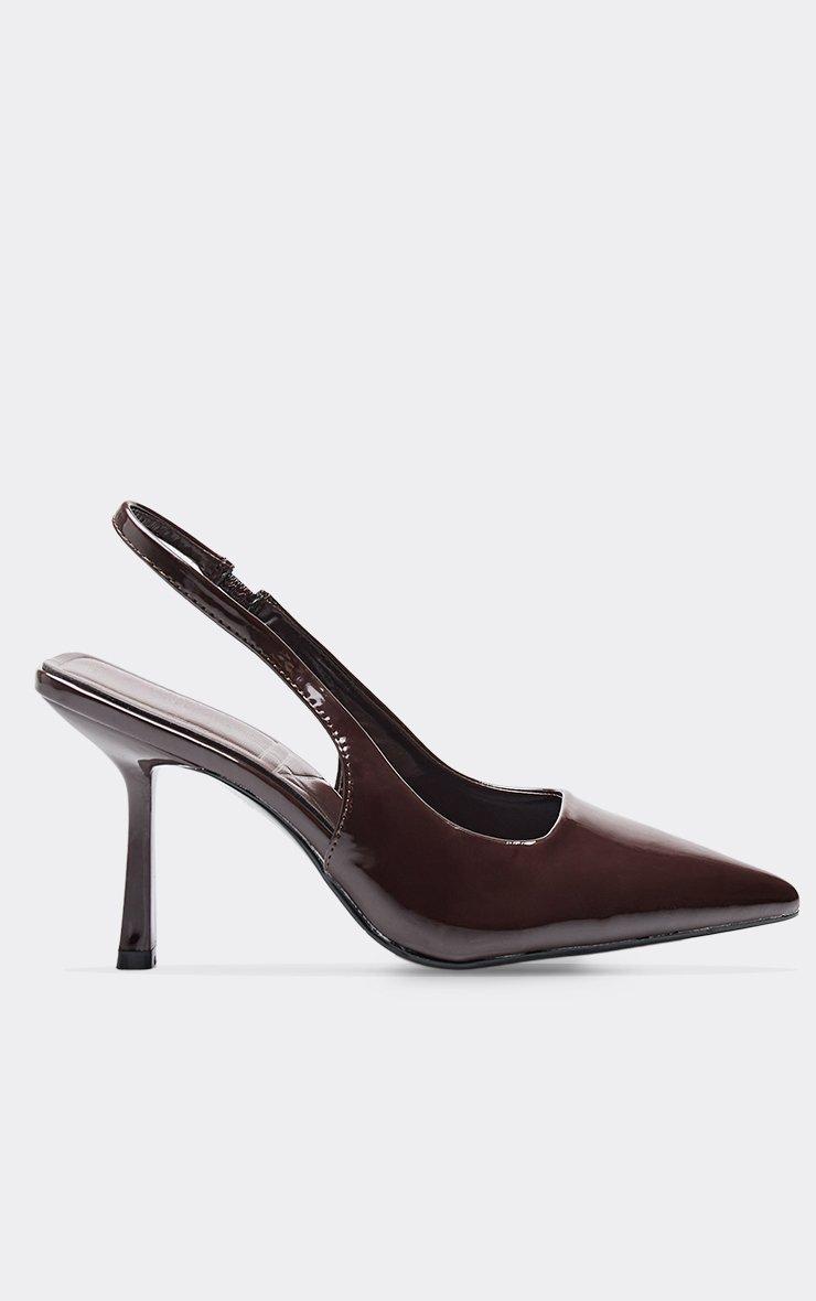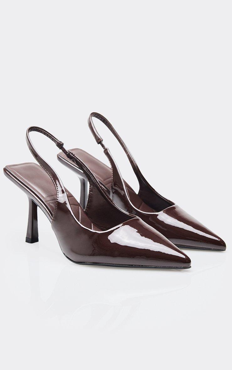 brooker pointed toe slingback court heel in brown patent