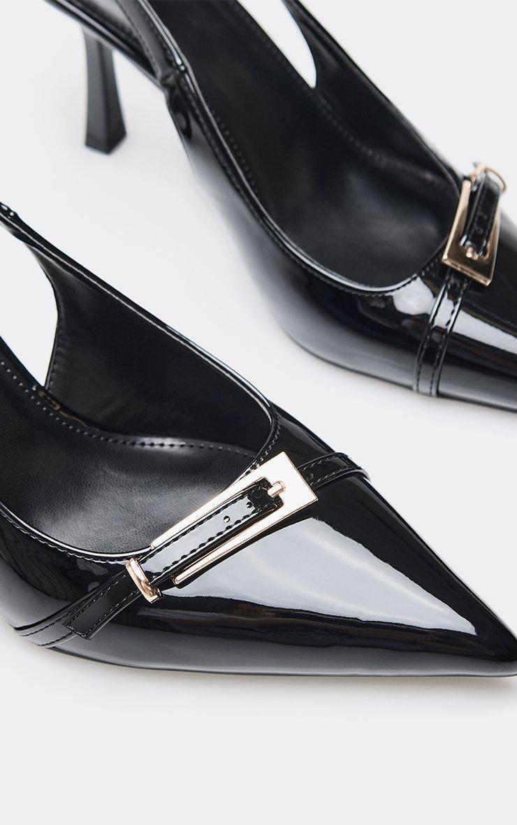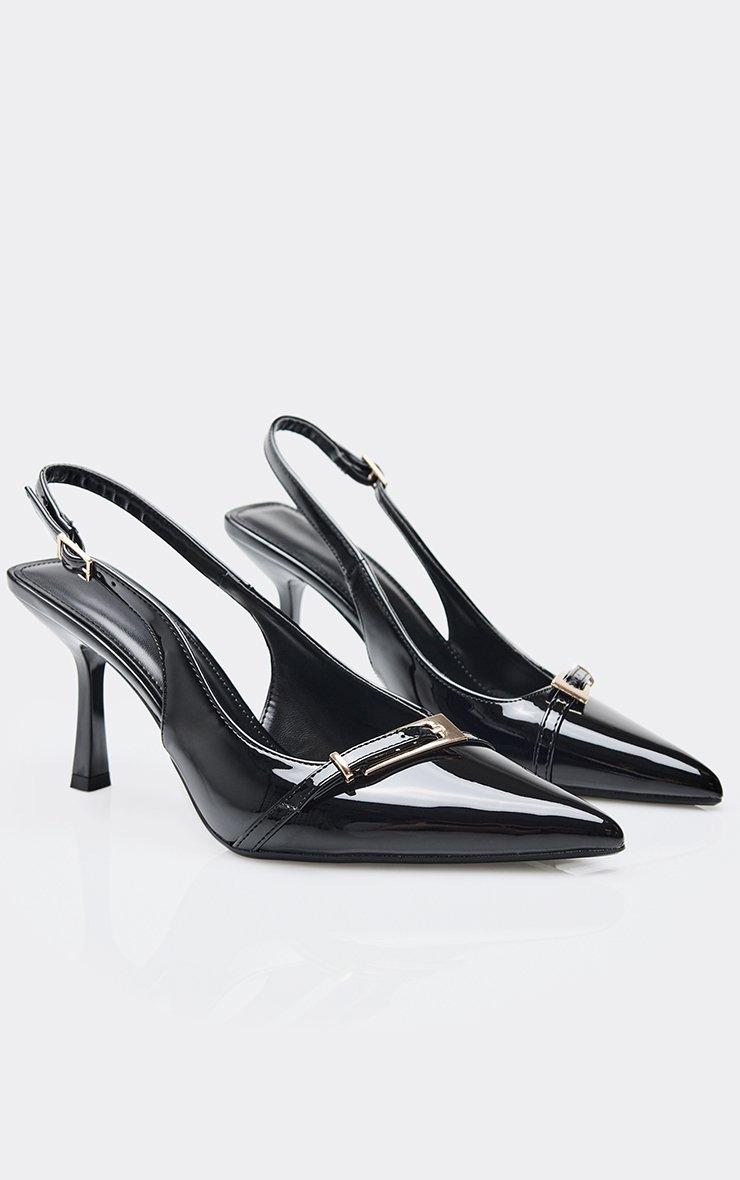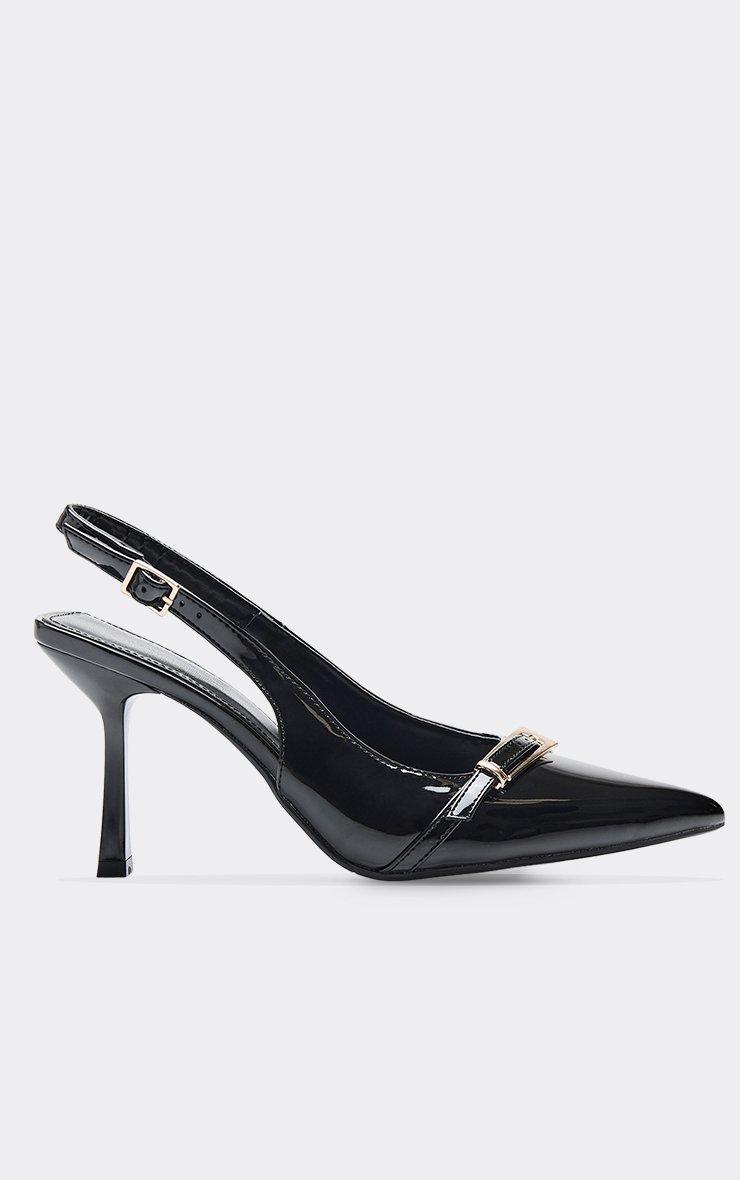 belli buckle detail pointed toe slingback court heel in black patent