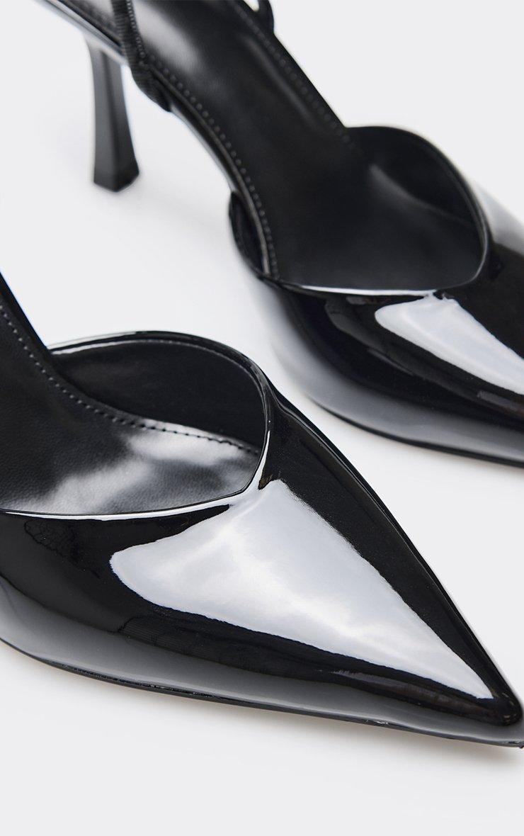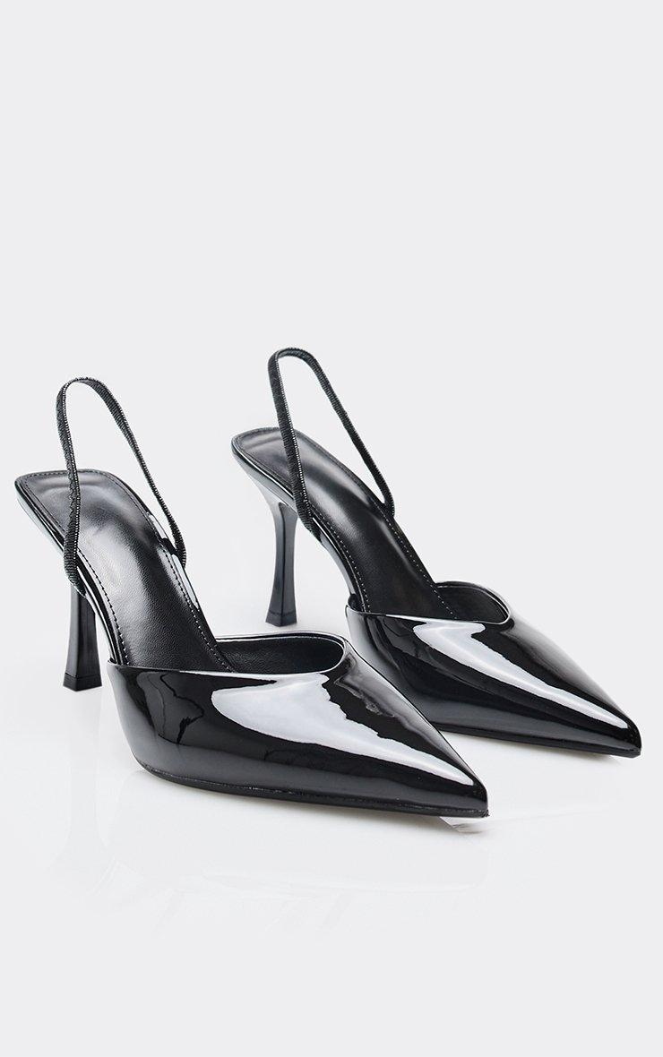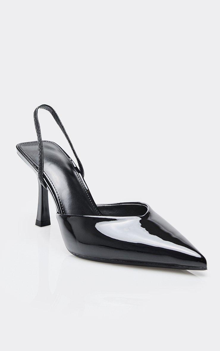 Cyran Pointed Toe Slingback Court Heel In Black Patent