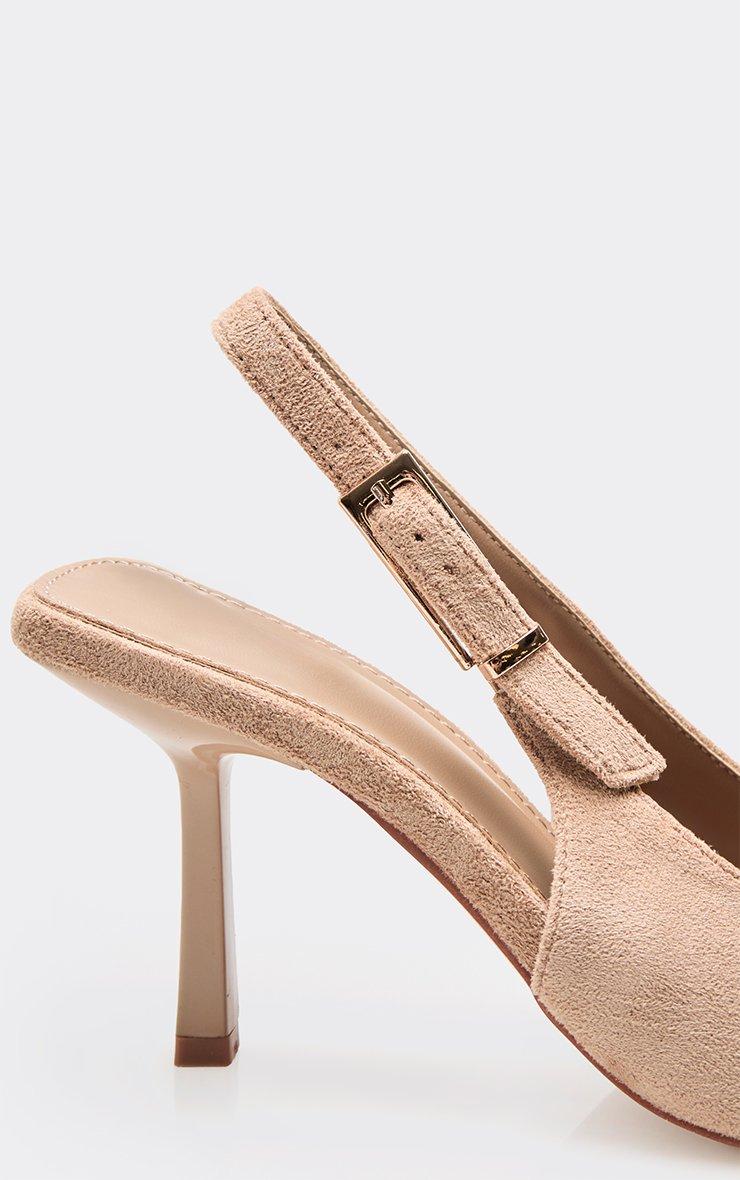 mixed pointed toe slingback court heel in beige faux suede