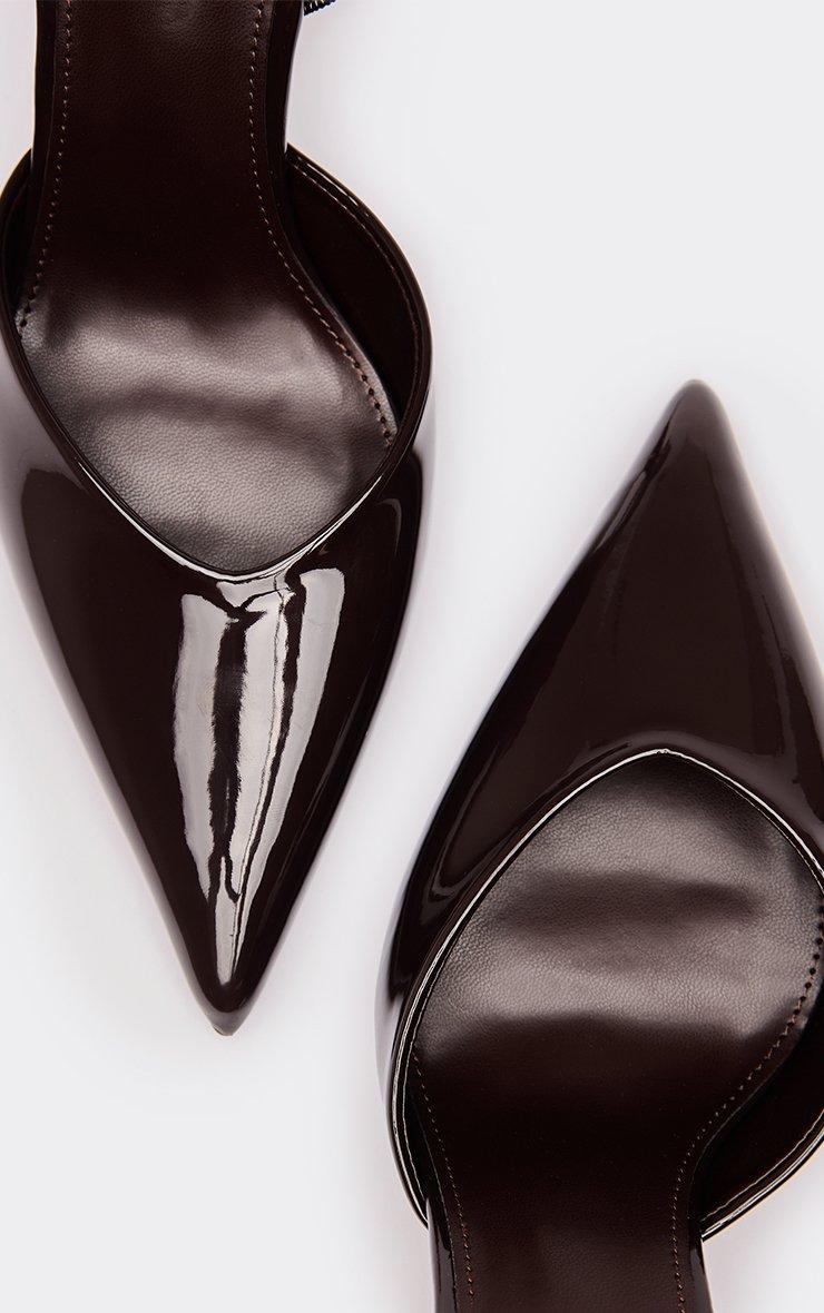 Cyran Pointed Toe Slingback Court Heel In Brown Patent