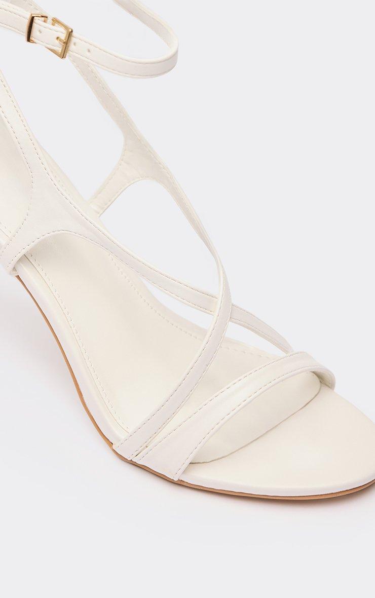erin cross strap stiletto heel in white faux leather