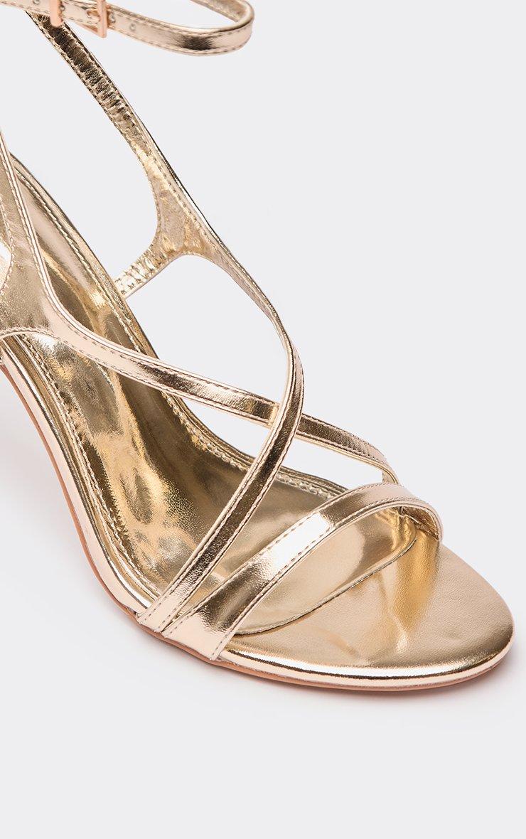 Erin Cross Strap Stiletto Heel In Gold Faux Leather