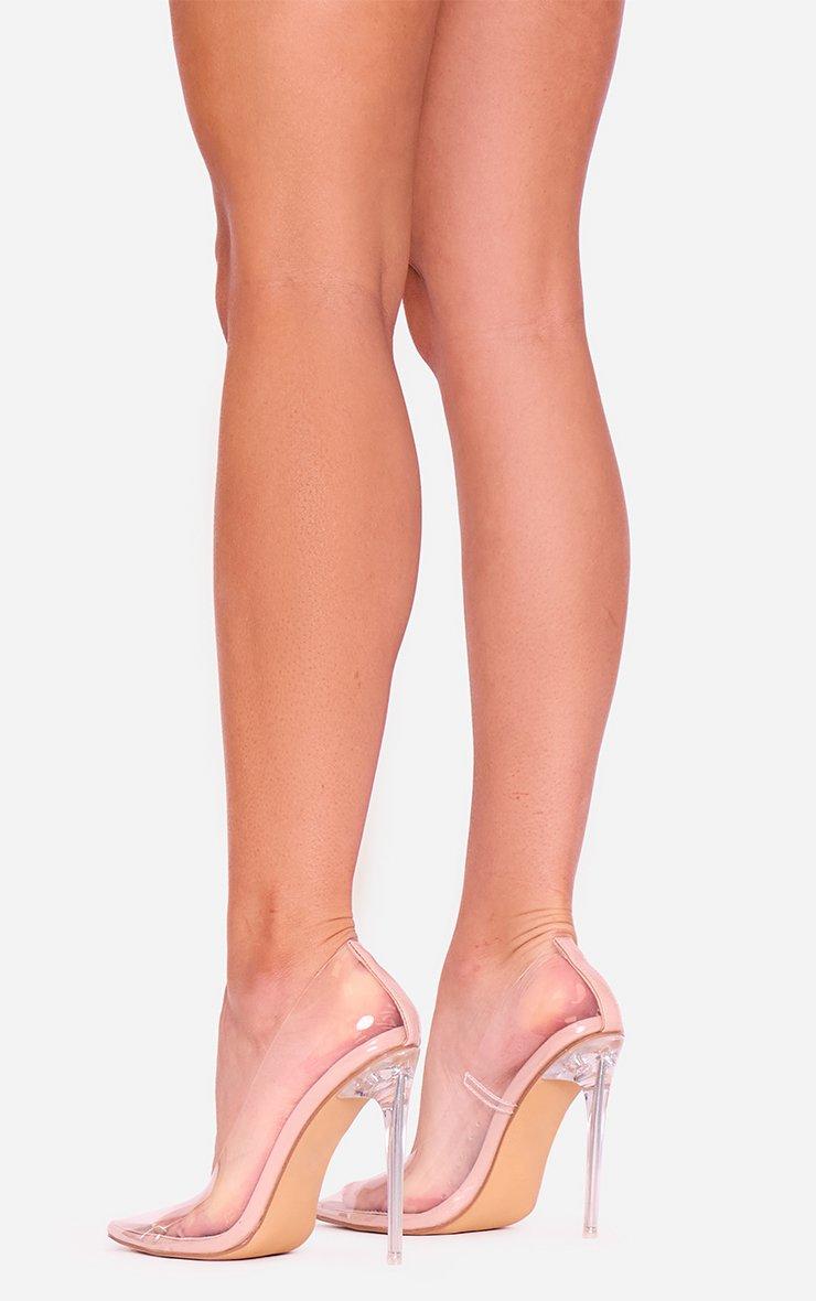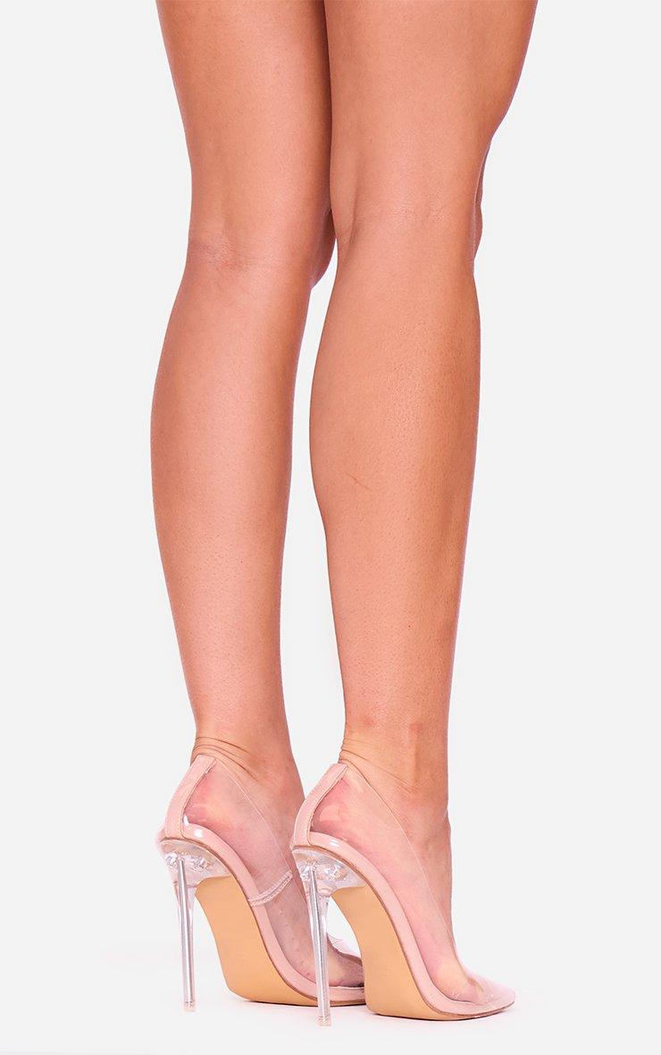 Lena Barely There Perspex Block Clear Heel In Nude Patent