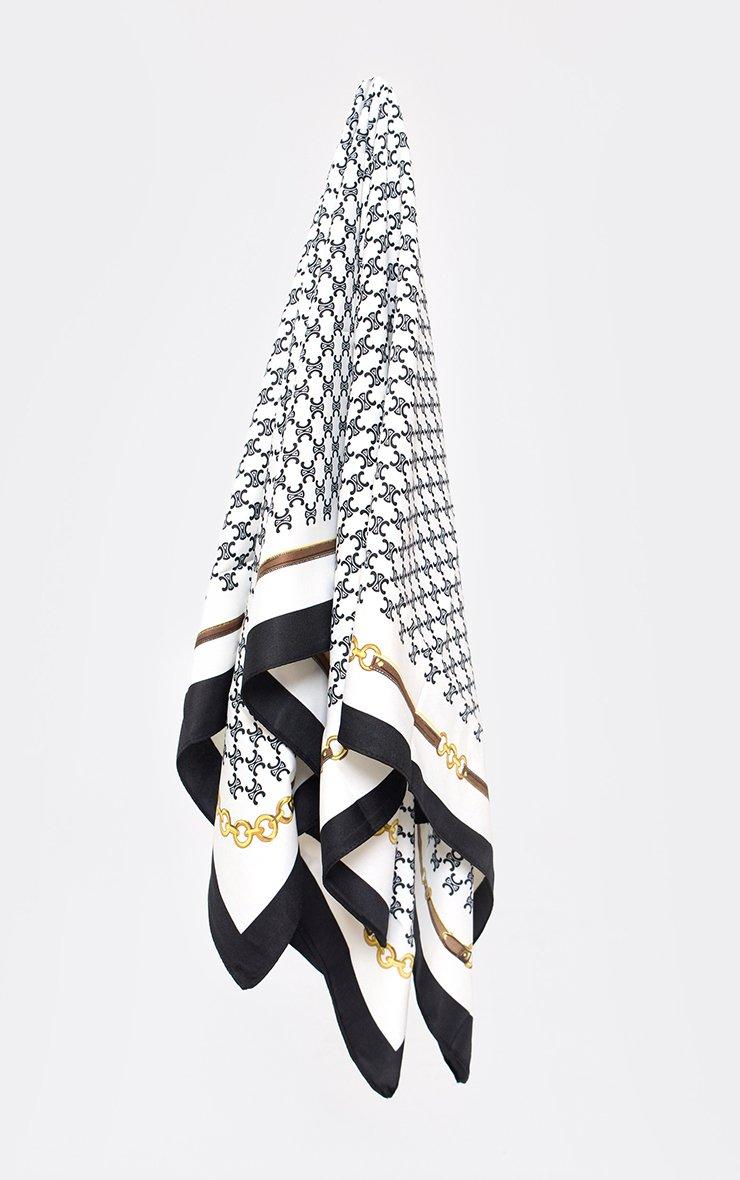 printed detail headscarf in black and cream