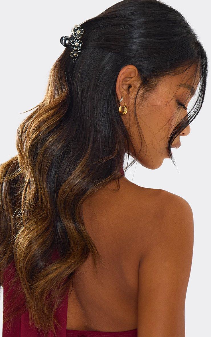 Flower Detail Small Hair Claw Clip In Black