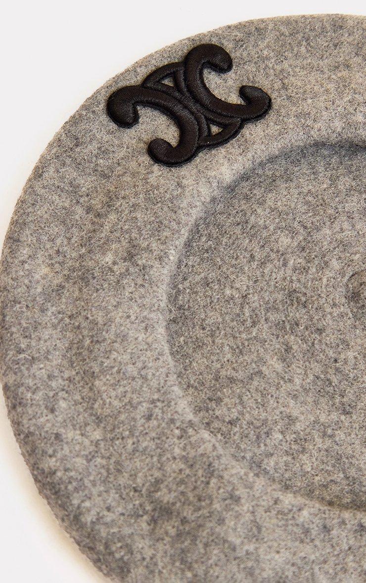 Logo Detail Beanie Hat In Grey Cable Knit