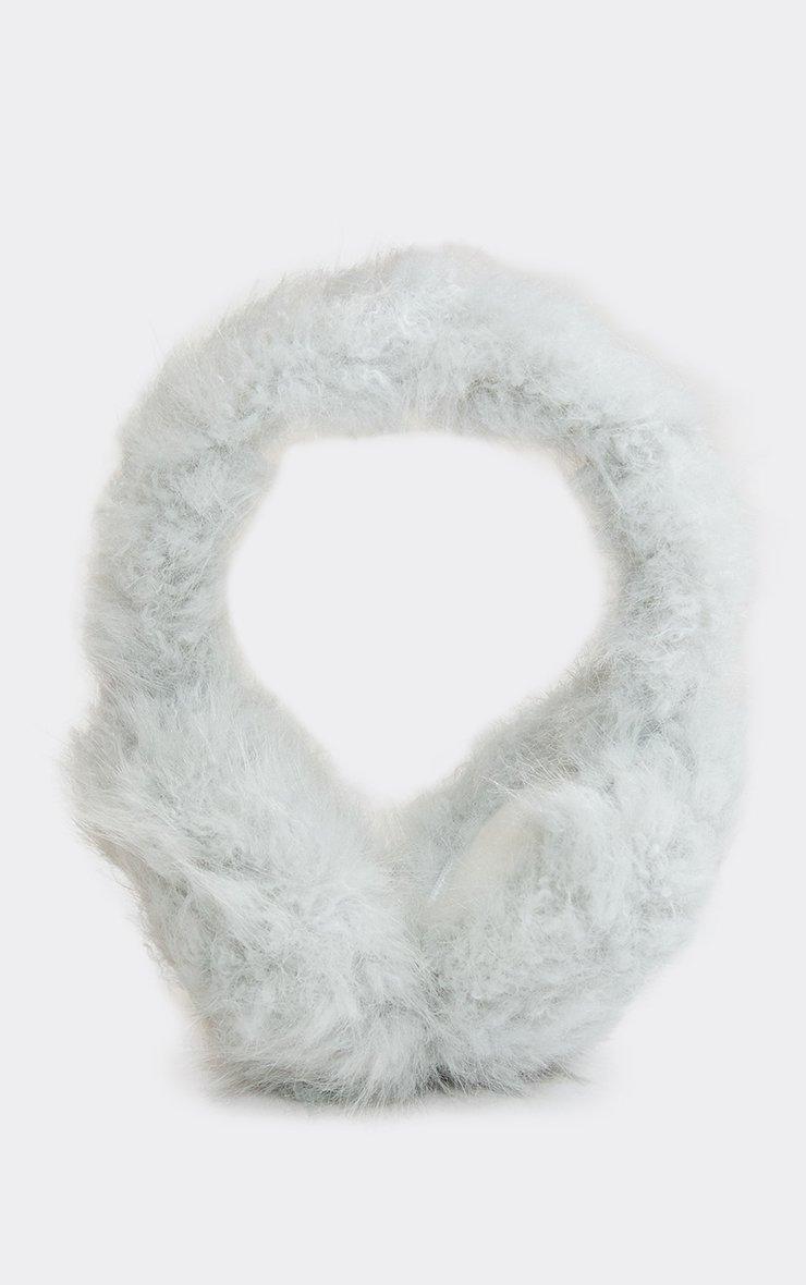 Chunky Oversized Earmuffs In Grey Faux Fur