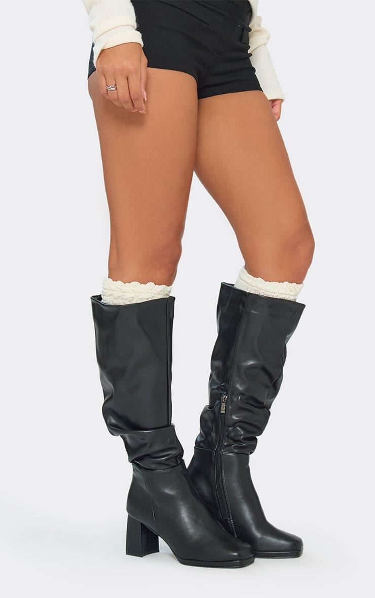 Bernice Square Toe Block Heel Knee High Boot In Black Faux Leather