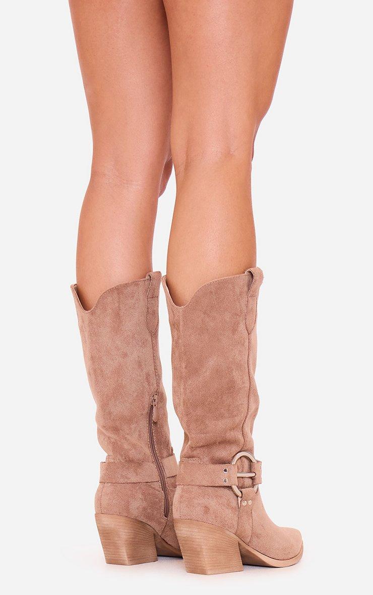 Denver Side Ring Detail Pointed Toe Mid Calf Western Cowboy Boot In Taupe Faux Suede