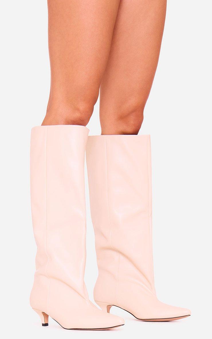 Mona Buckle Detail Knee High Boot In Black Faux Leather