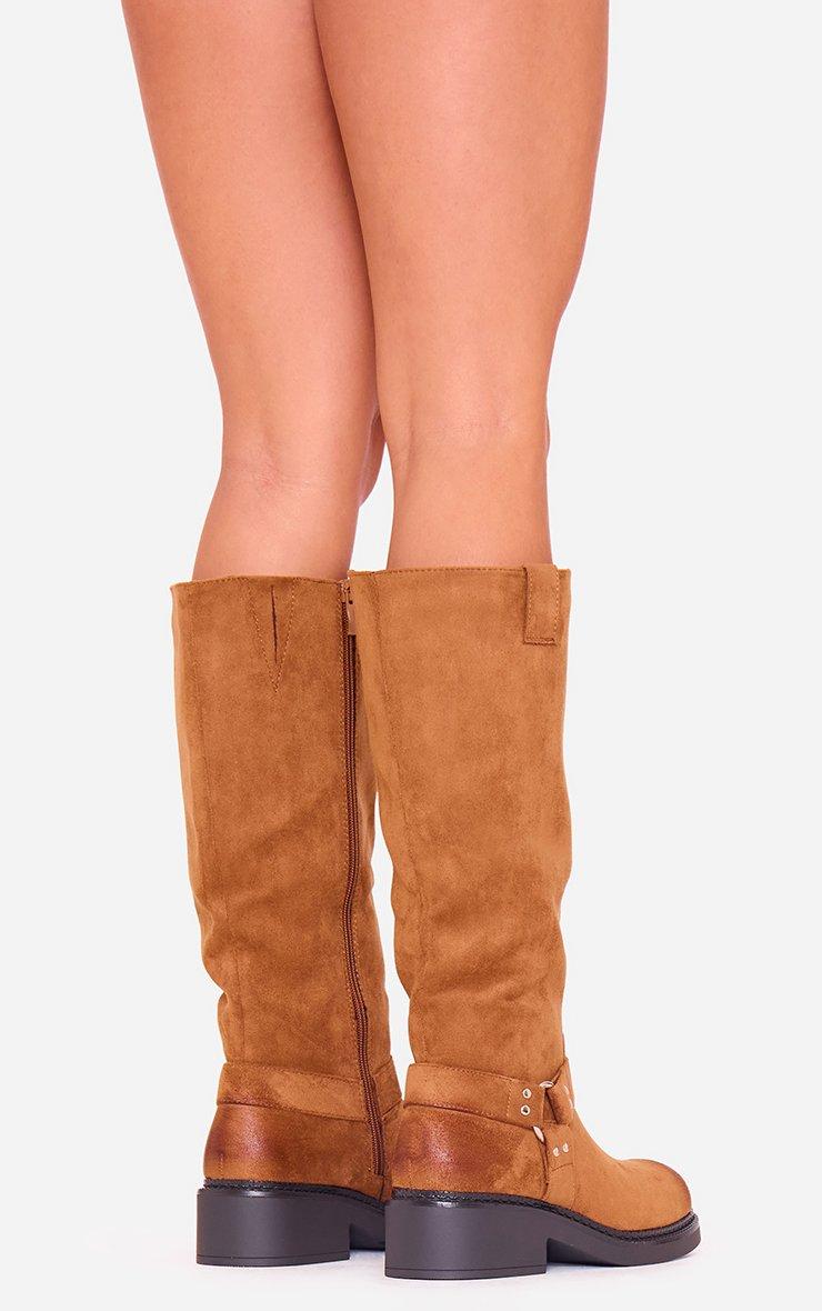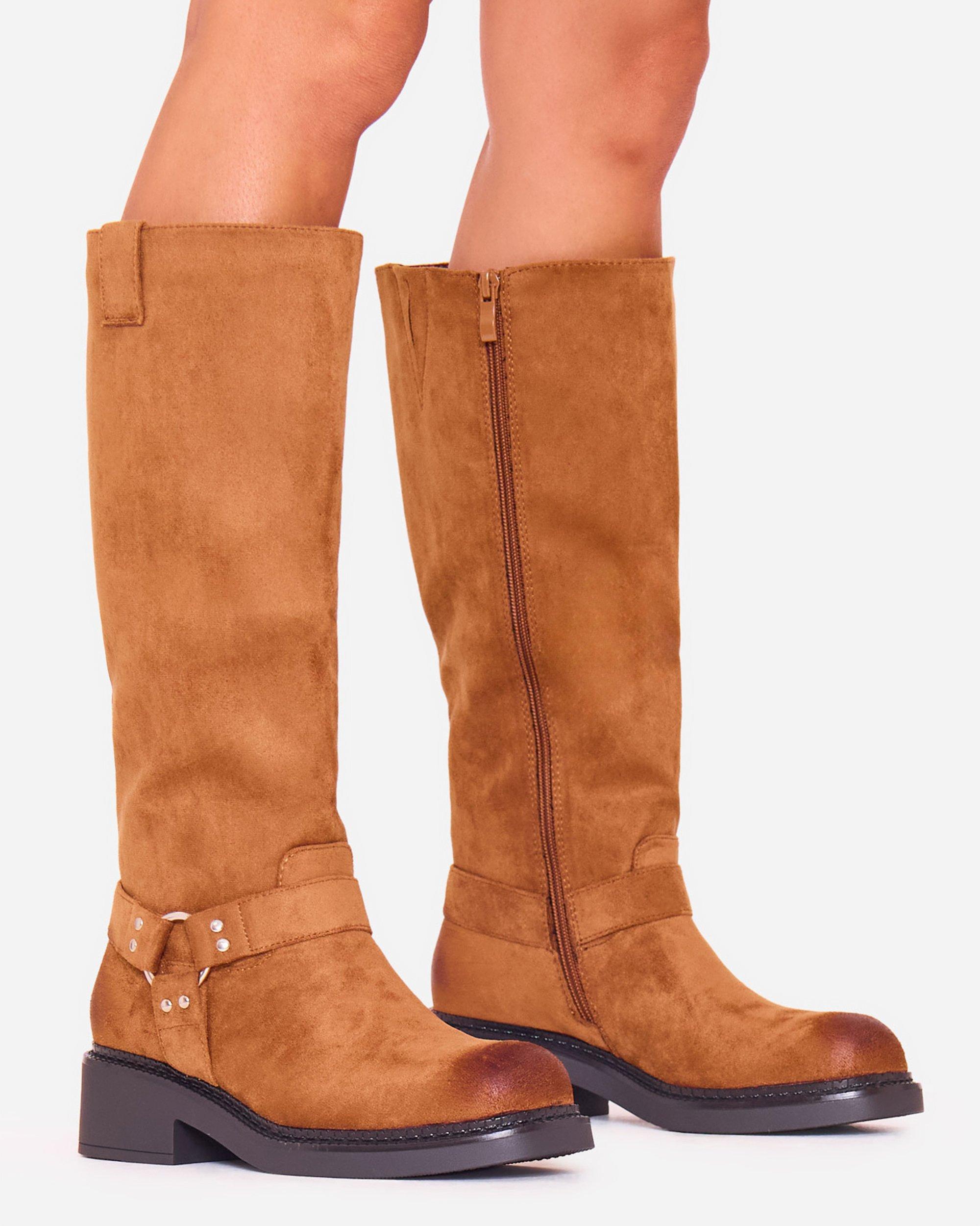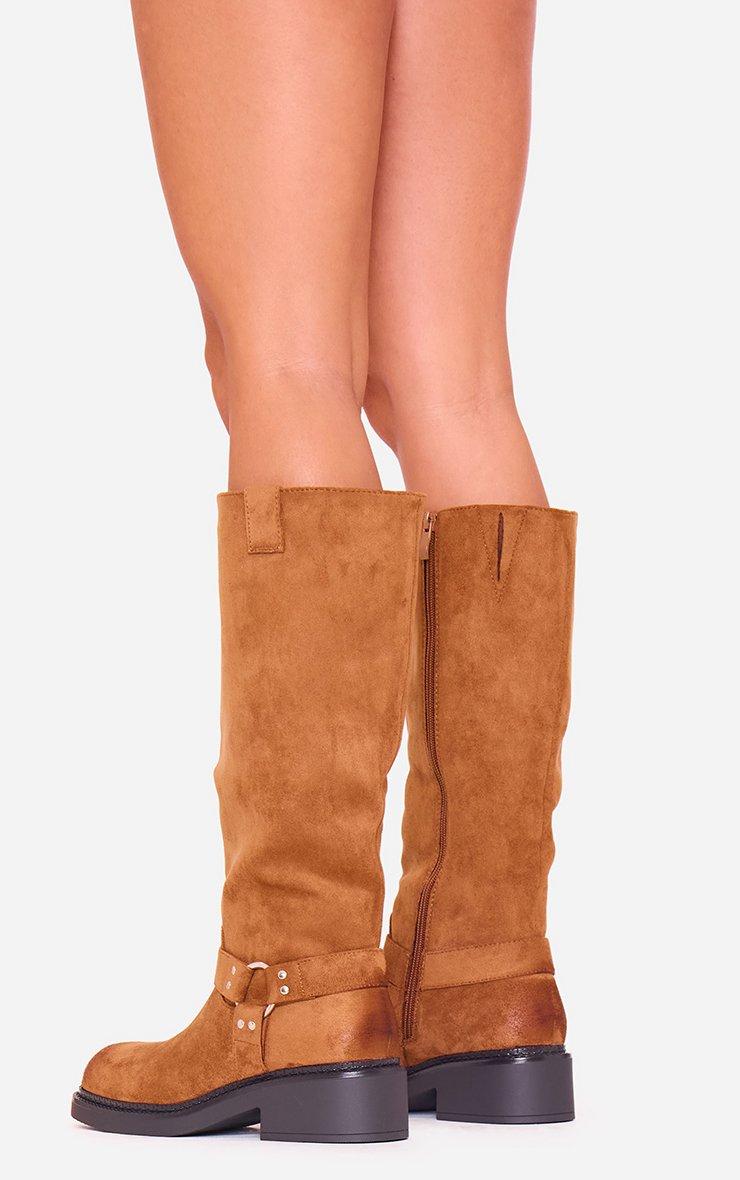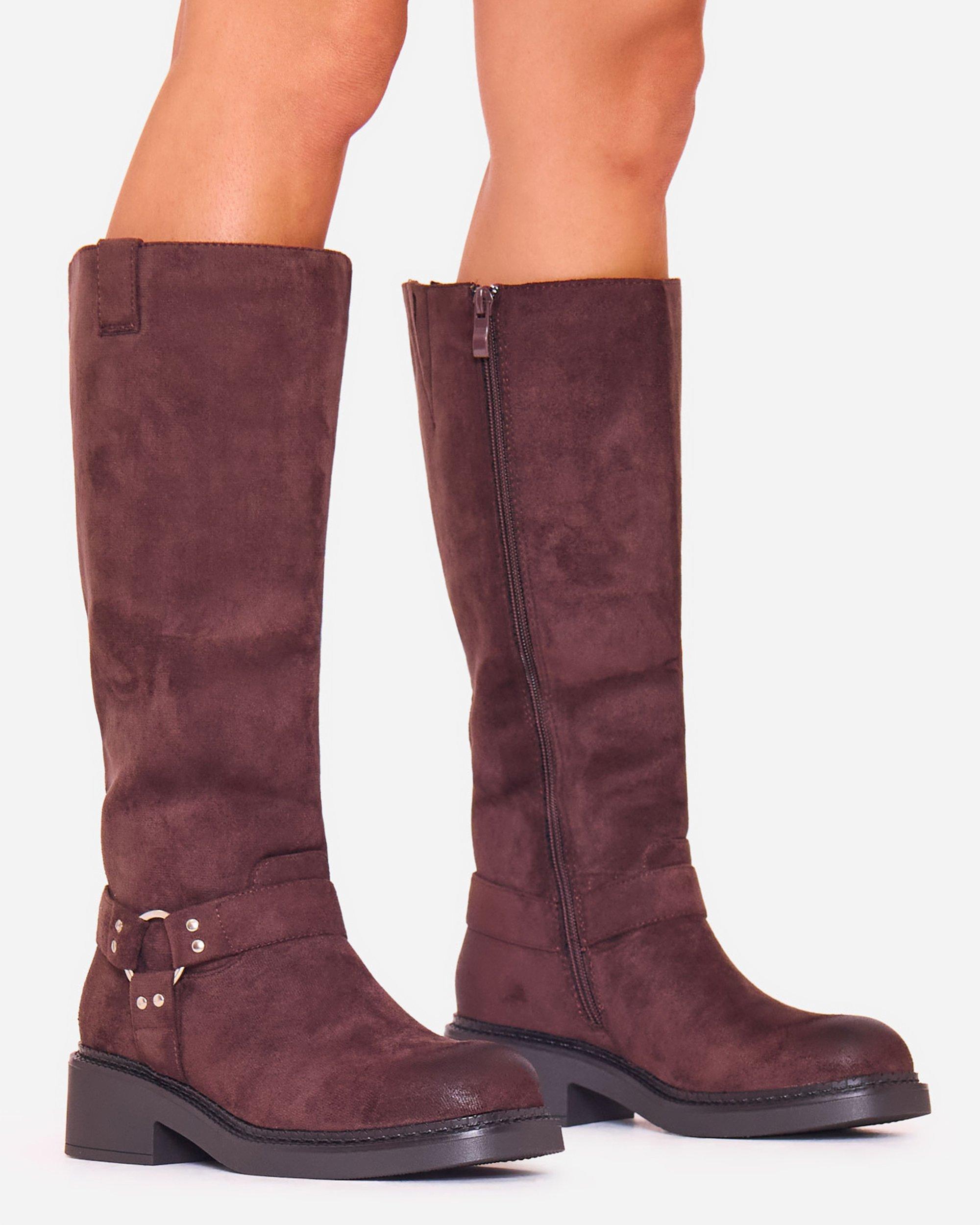 Mona Buckle Detail Knee High Boot In Black Faux Leather