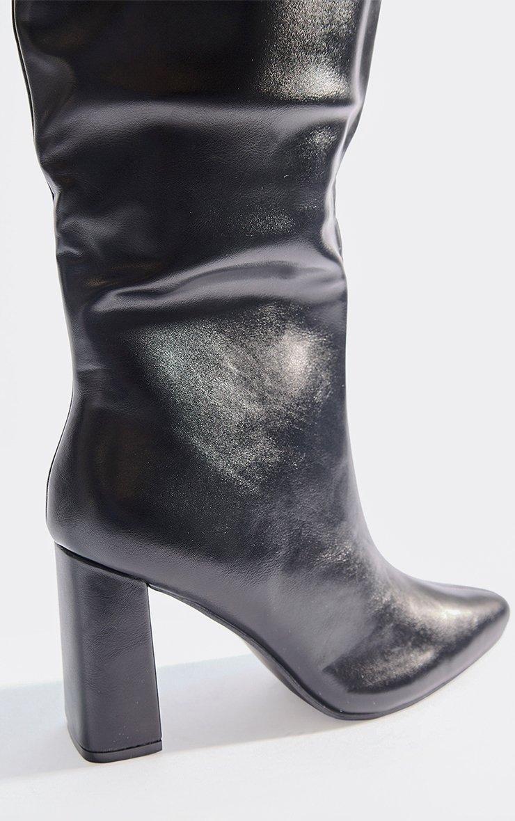 Caesar Chunky Block Heel Knee High Long Boot In Black Faux Leather