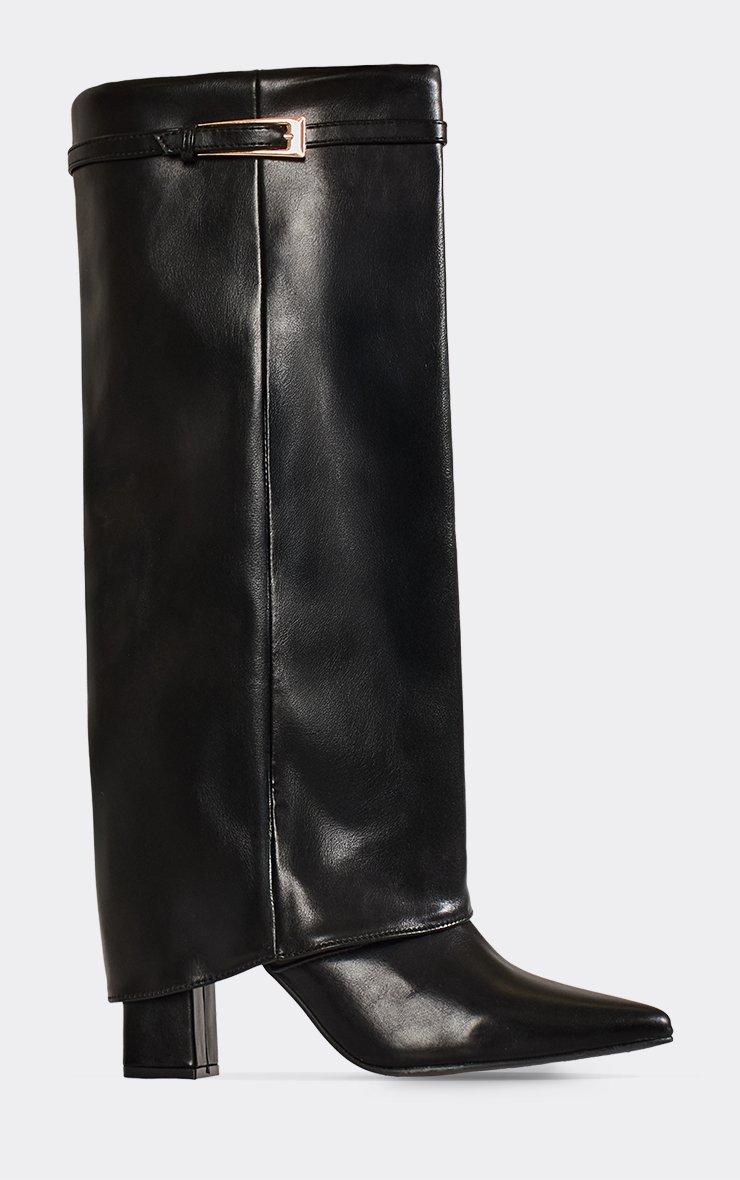 Mona Buckle Detail Knee High Boot In Black Faux Leather