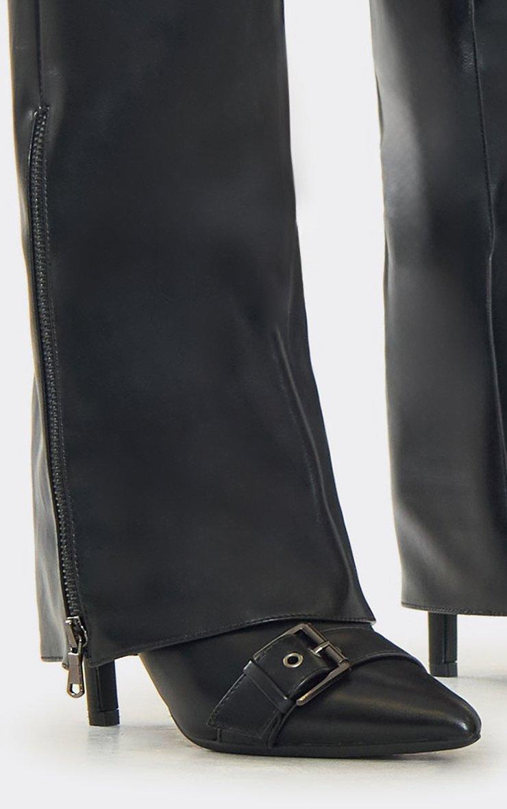 Tempo Buckle Detail Pointed Toe Stiletto Heel Knee High Long Boot In Black Faux Leather