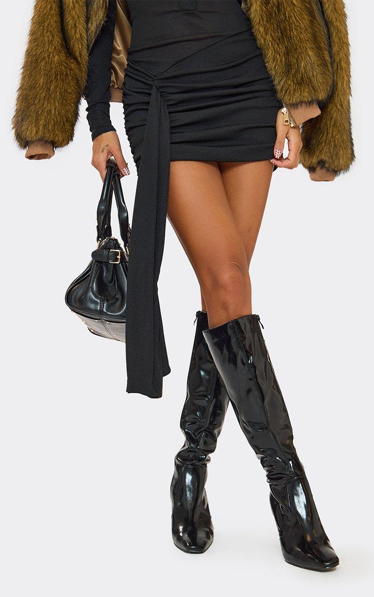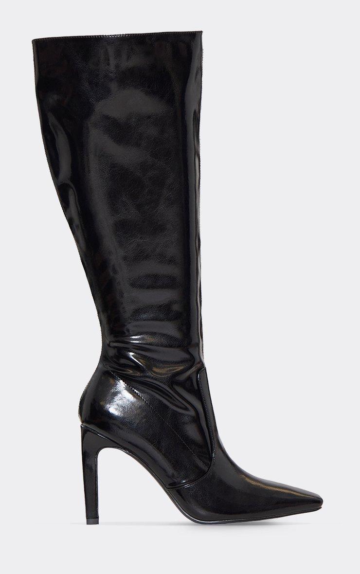 Bernice Square Toe Block Heel Knee High Boot In Black Faux Leather
