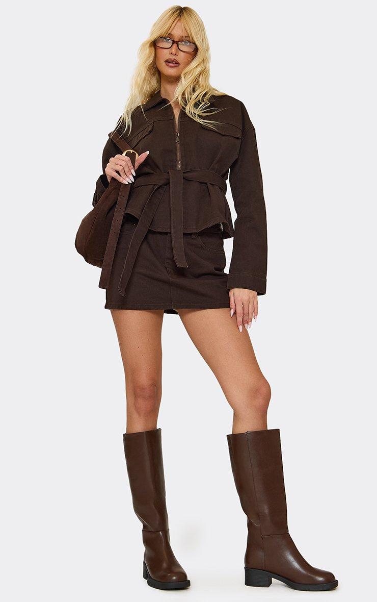 Shuffle Block Heel Knee High Boot In Brown Faux Leather
