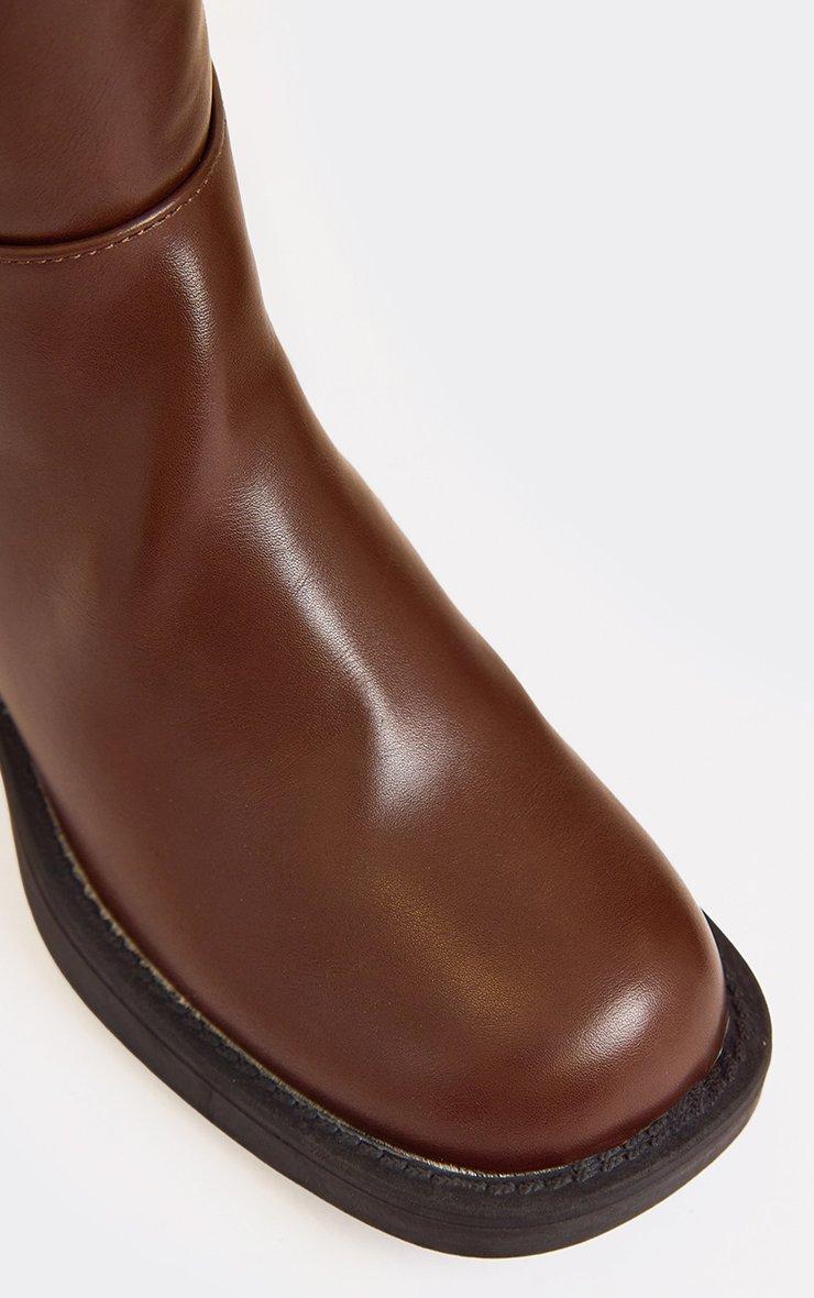 Beloved Chunky Sole Knee High Long Biker Boot In Brown Faux Leather