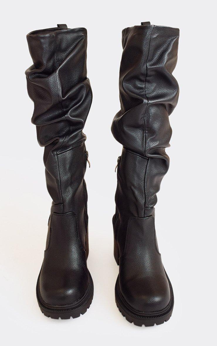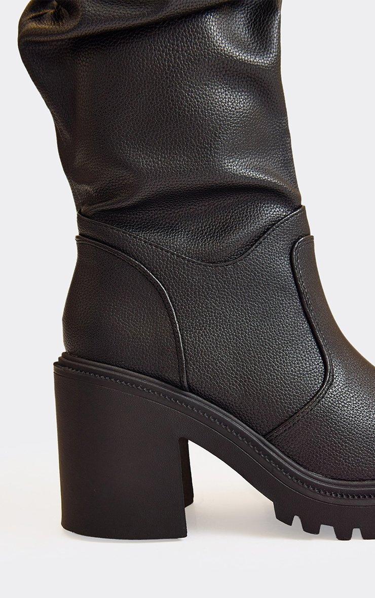 Stomp It Out Block Heel Knee High Slouched Detail Boot In Black Faux Leather