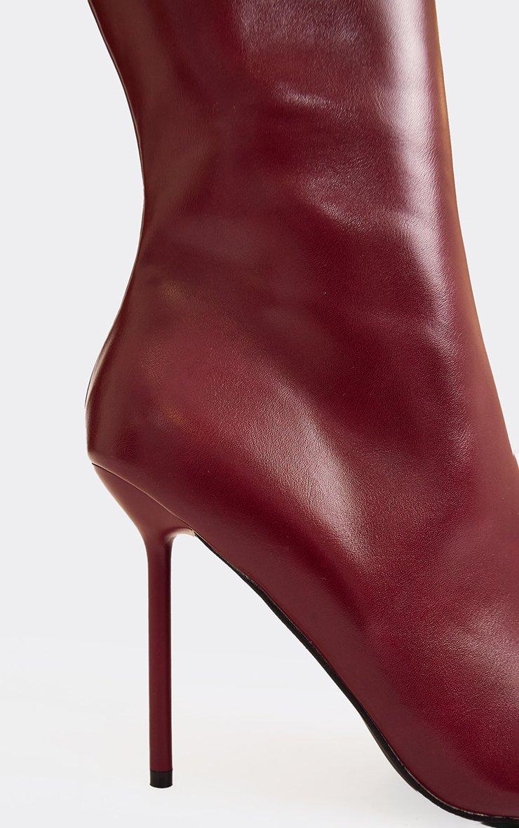 Slayer Pointed Toe Stiletto Heel Knee High Boot In Burgundy Faux Leather