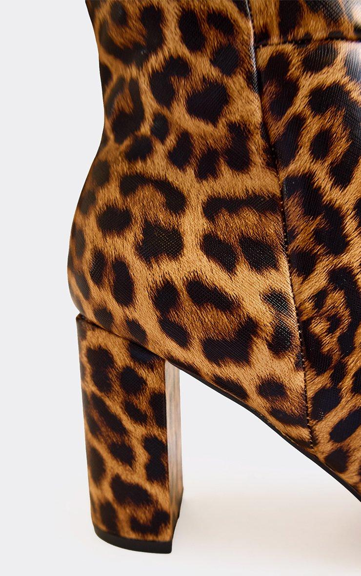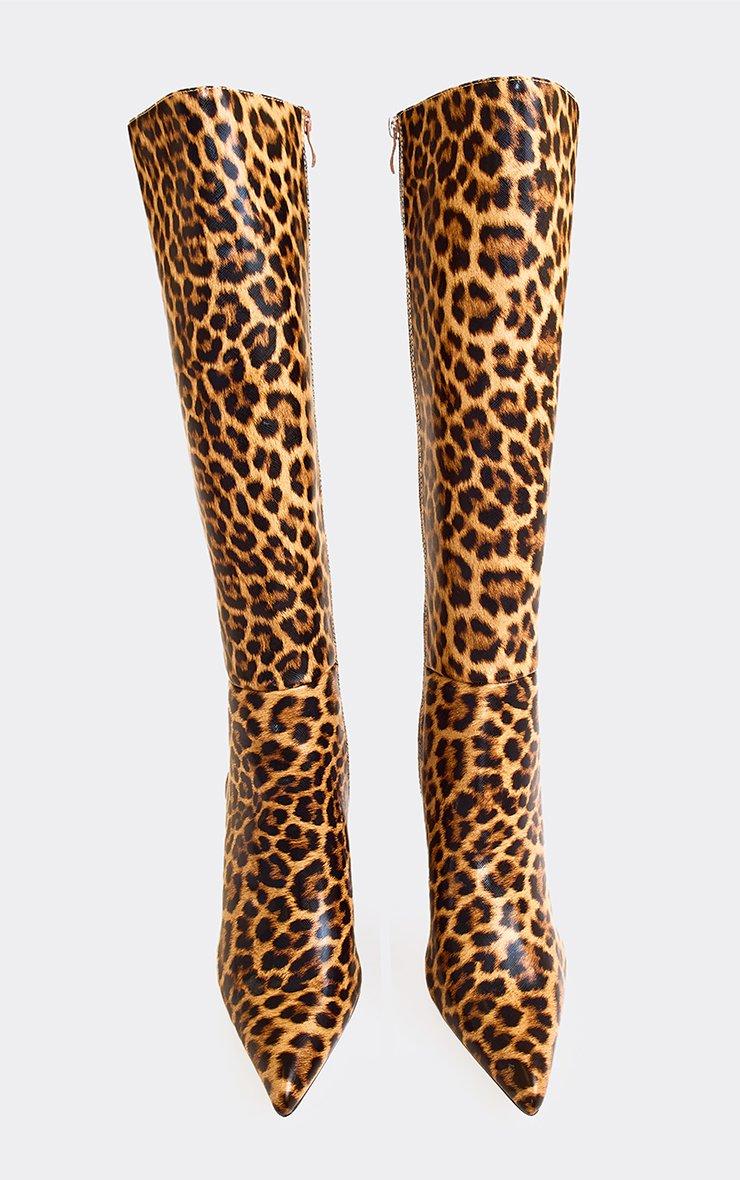 Outstanding Pointed Toe Knee High Heeled Boot In Leopard Print Faux Leather