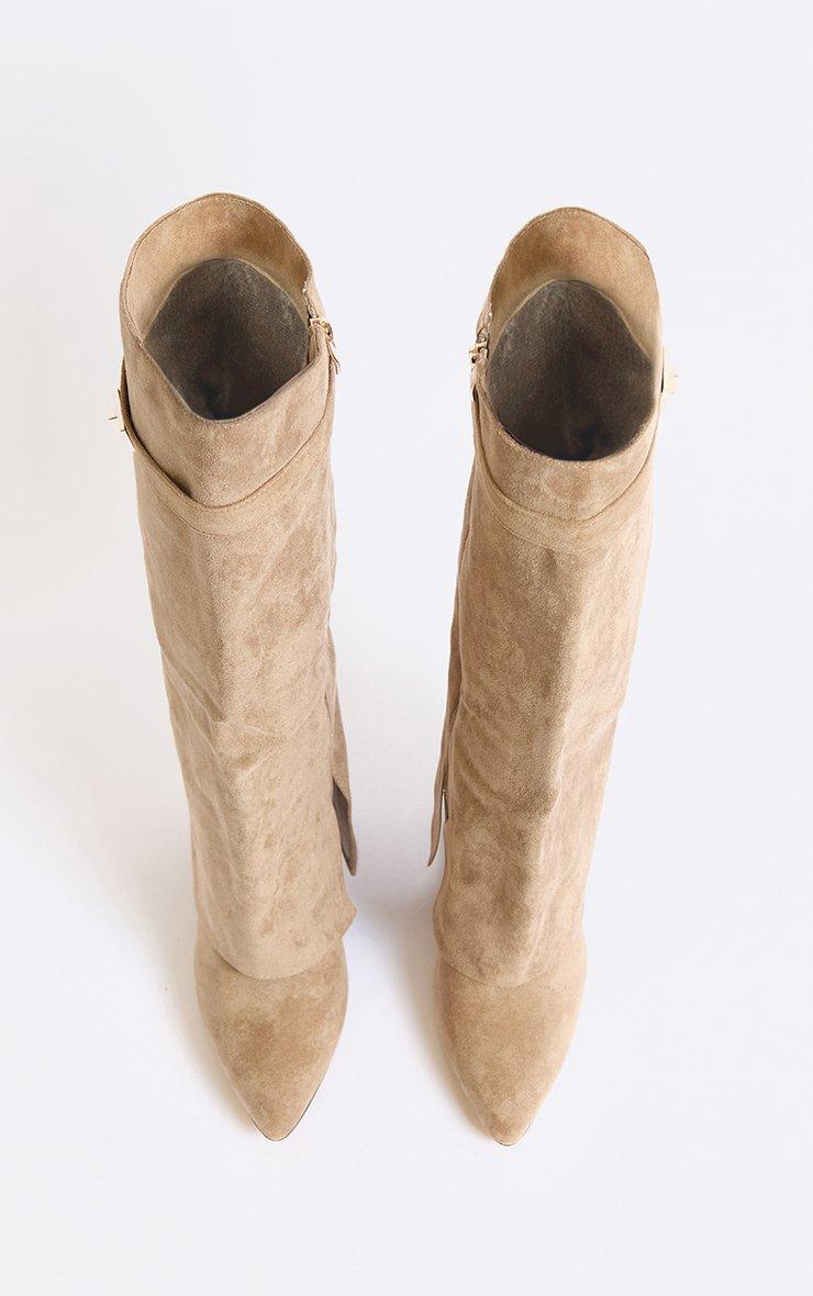Cave Pointed Toe Slouched Detail Knee High Boot In Khaki Faux Suede