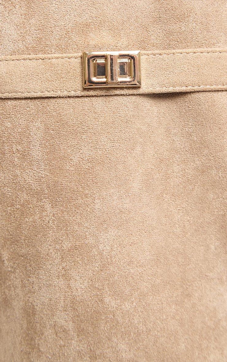 Magic Layered Lock Detail Pointed Toe Block Heel Knee High Boot In Beige Faux Suede
