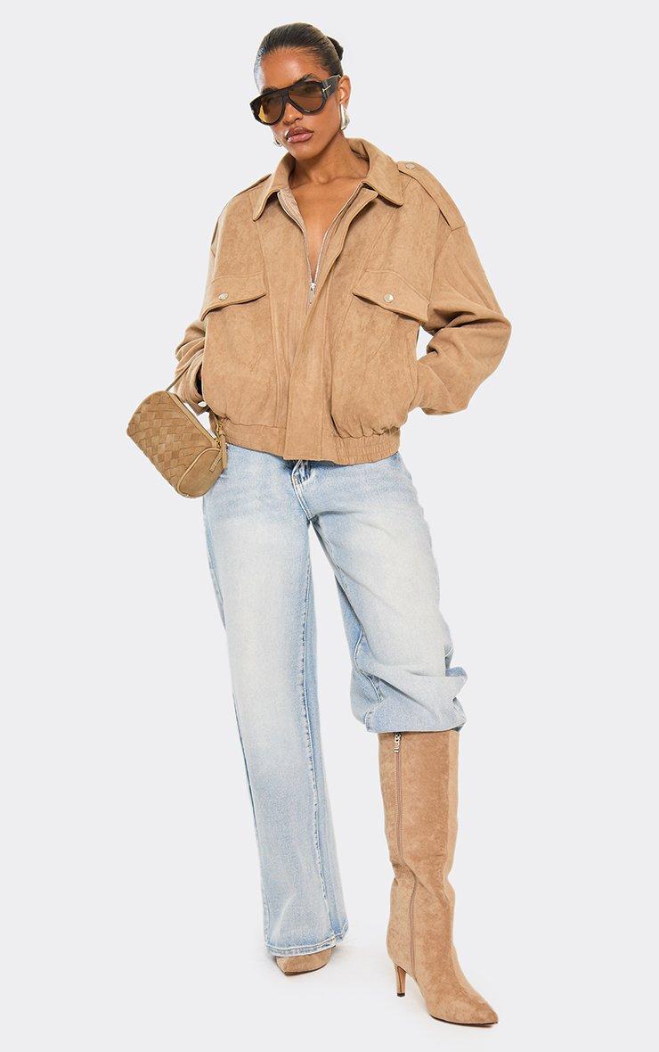 Jamming Zip Buckle Zip Detail Knee High Biker Boot In Beige Faux Suede