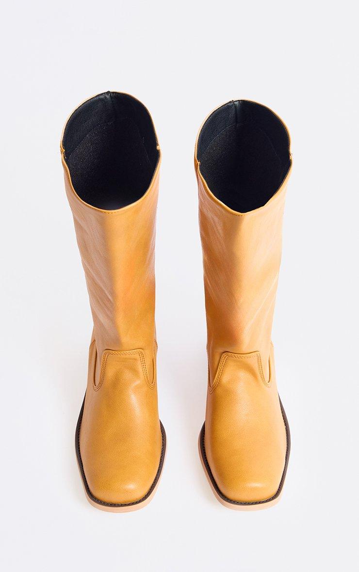 Favour Long Boot In Mustard Yellow Faux Leather