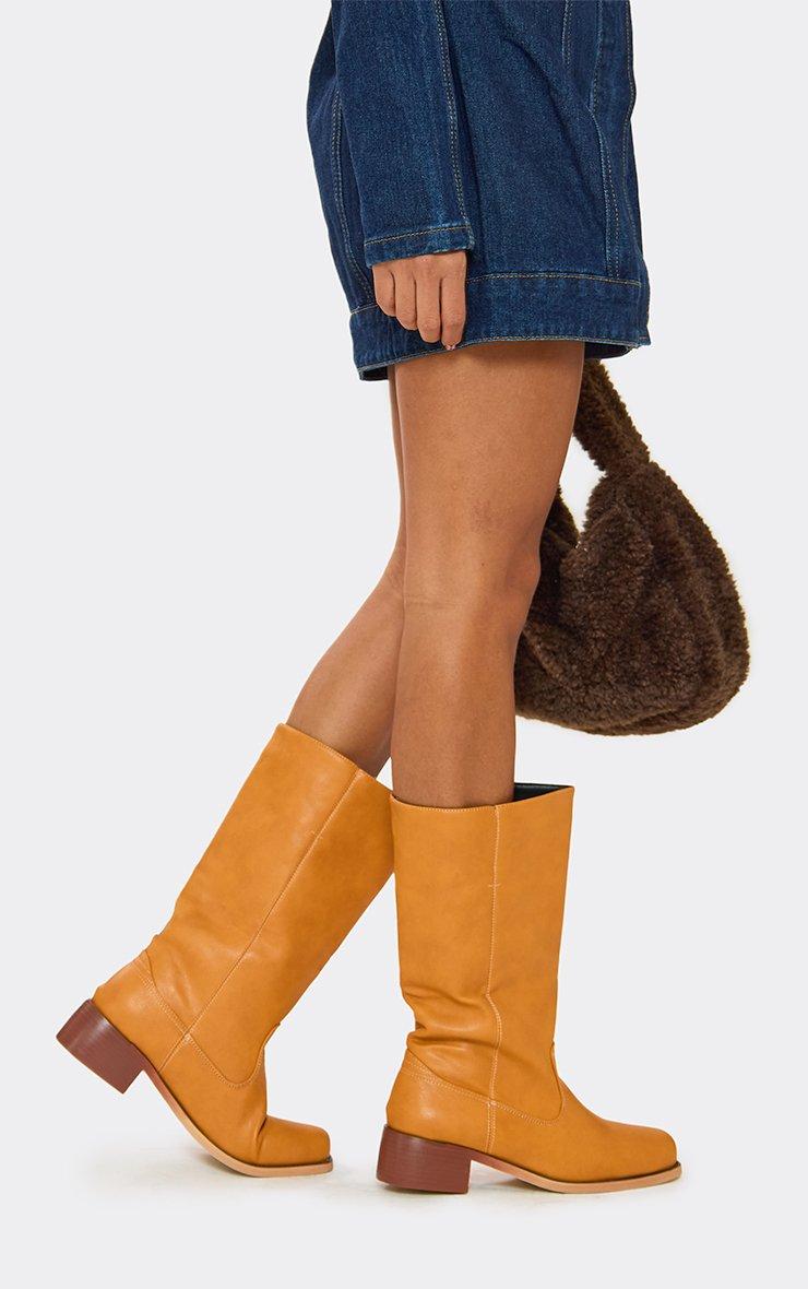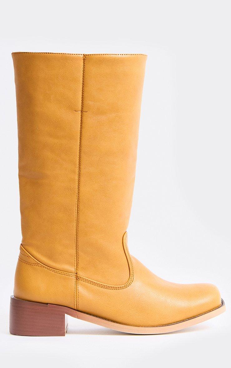 favour long boot in mustard yellow faux leather