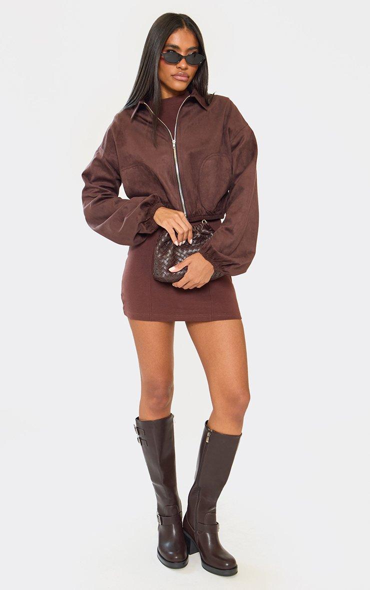 Cave Pointed Toe Slouched Detail Knee High Boot In Brown Faux Suede