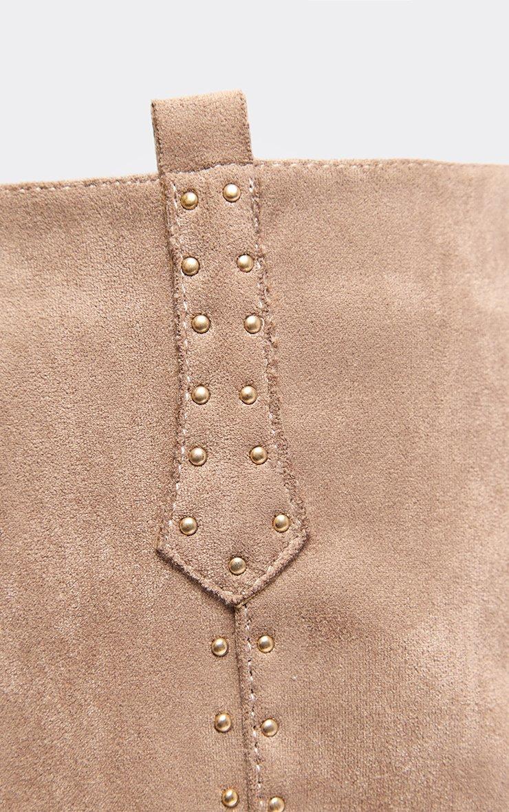 Special Pointed Toe Knee High Heeled Boot In Beige Faux Suede