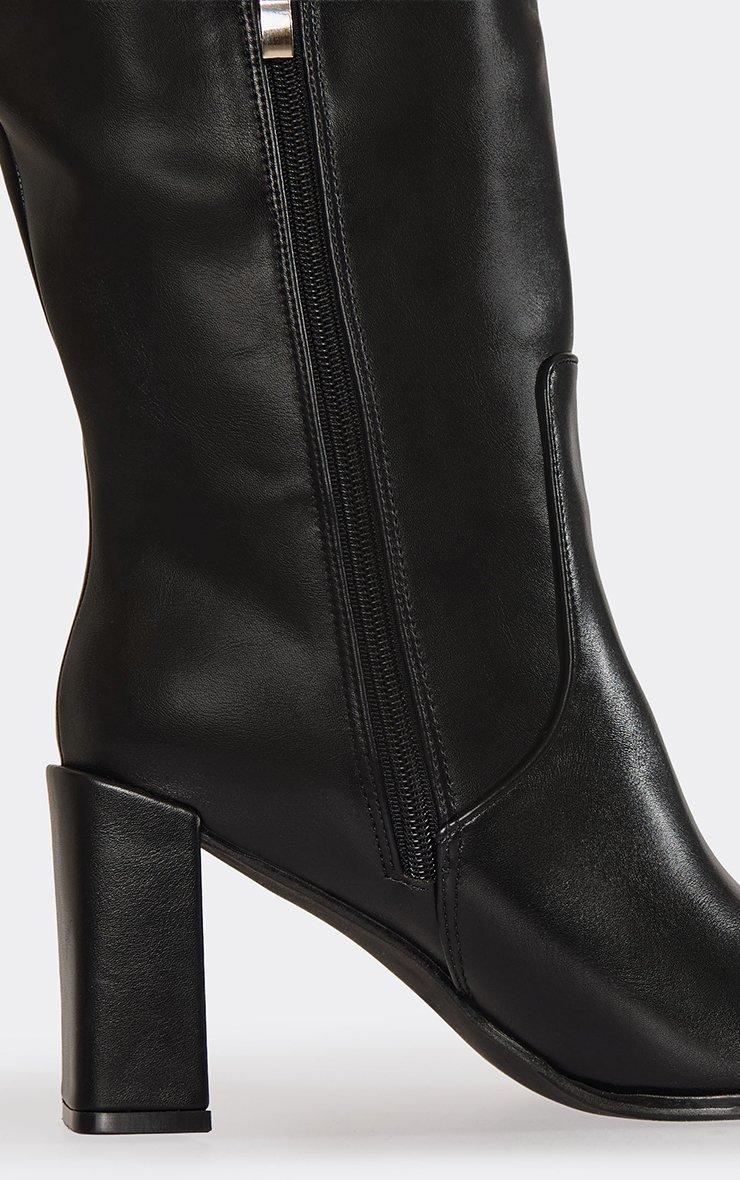 Caesar Chunky Block Heel Knee High Long Boot In Black Faux Leather