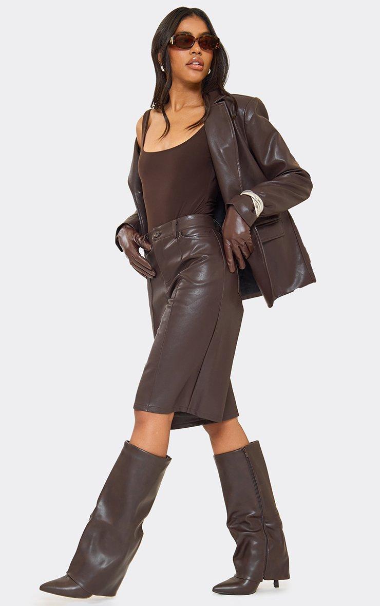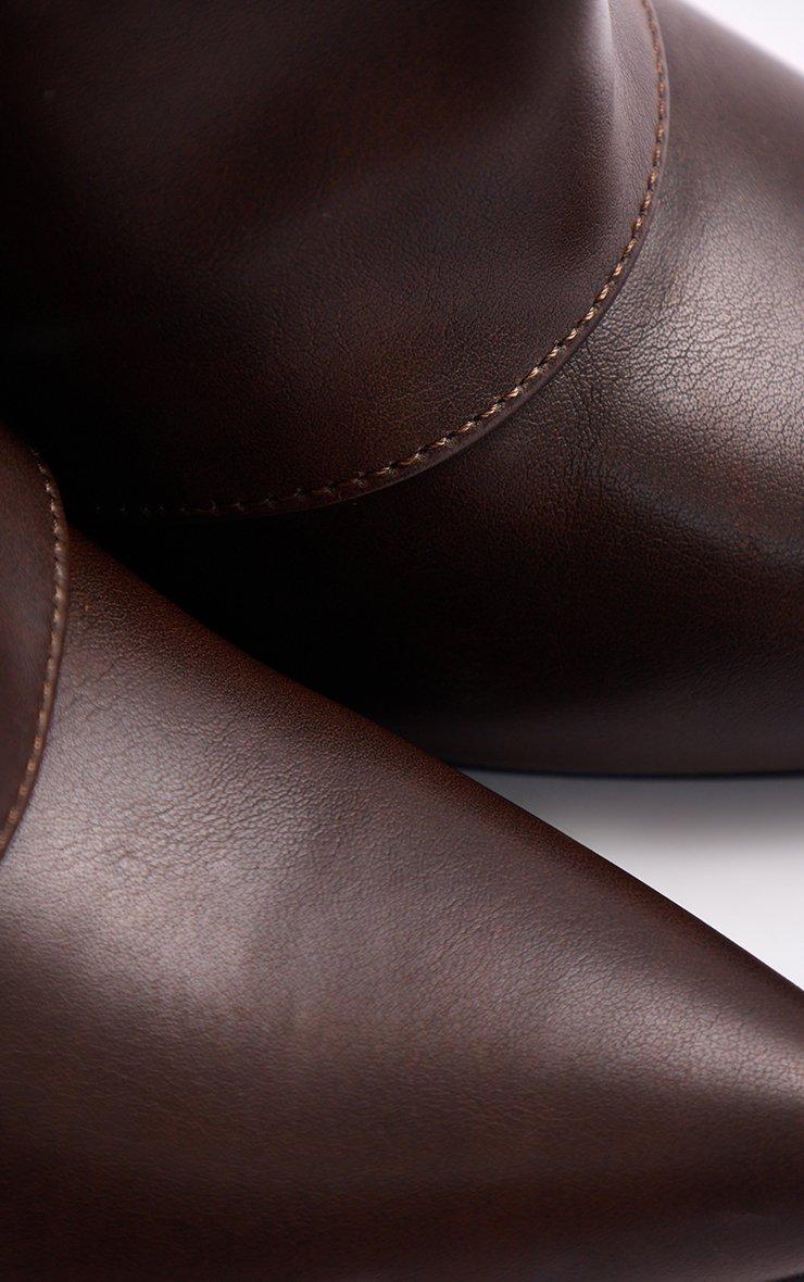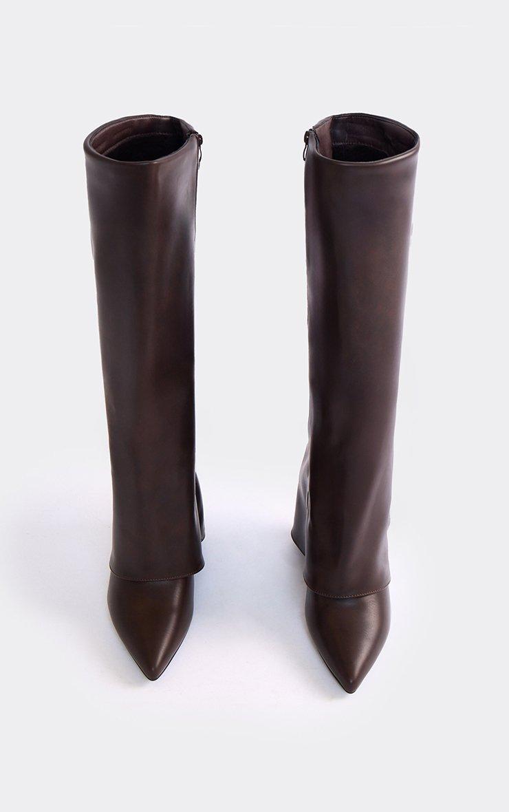 Random Layered Pointed Toe Stiletto Heel Knee High Boot In Brown Faux Leather